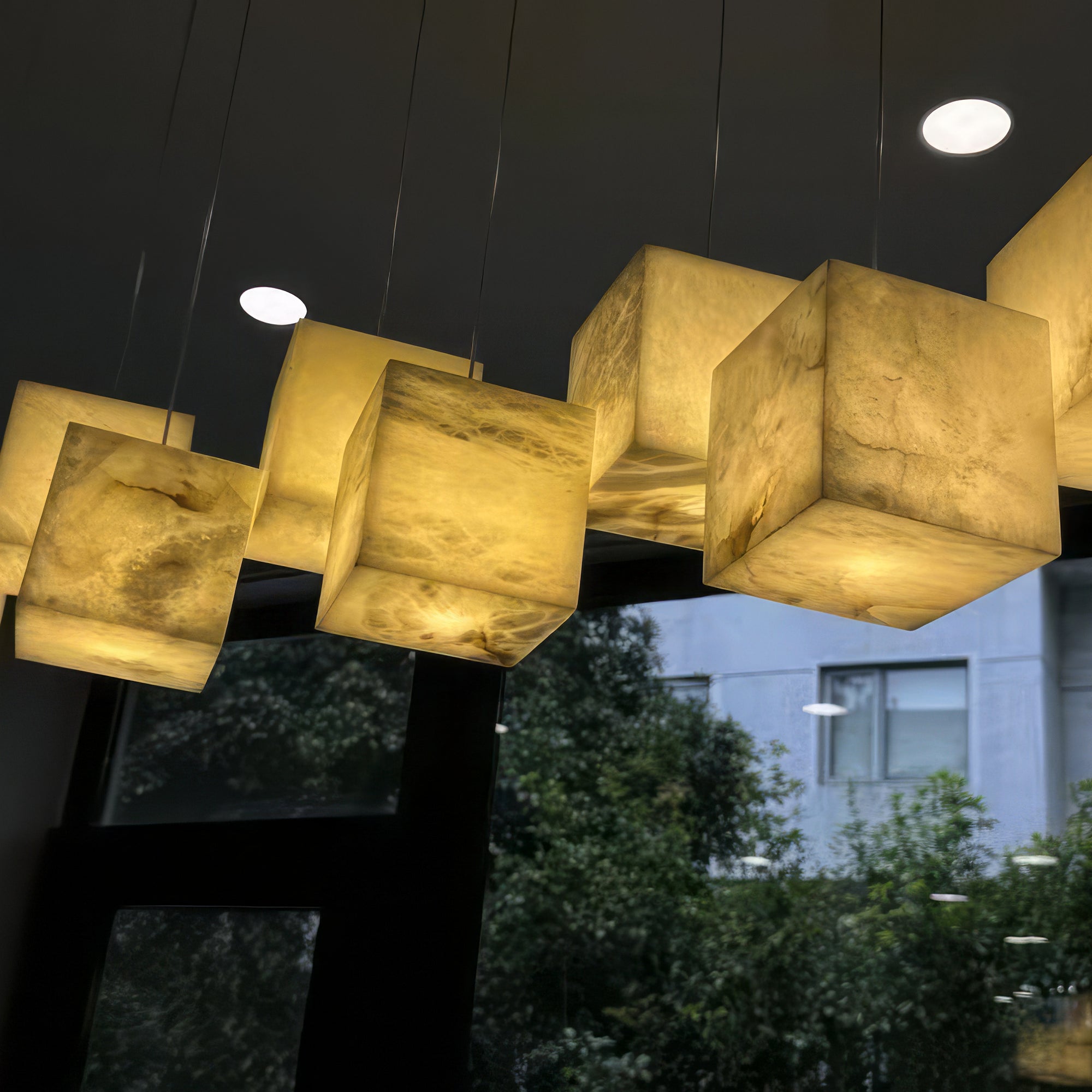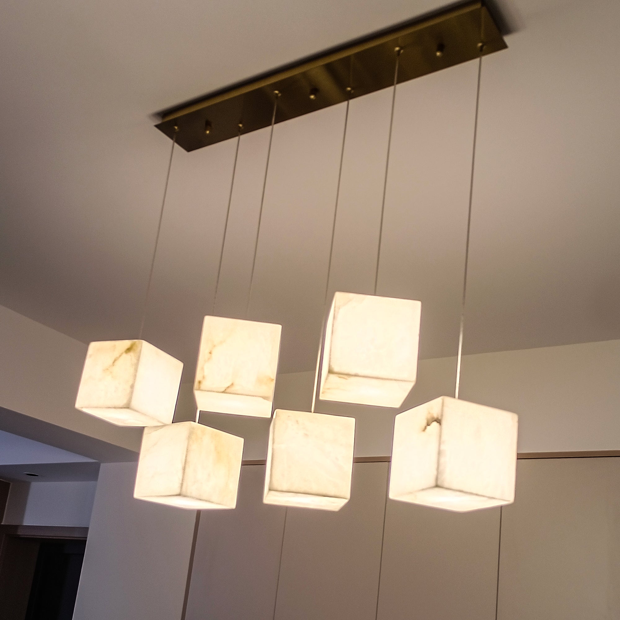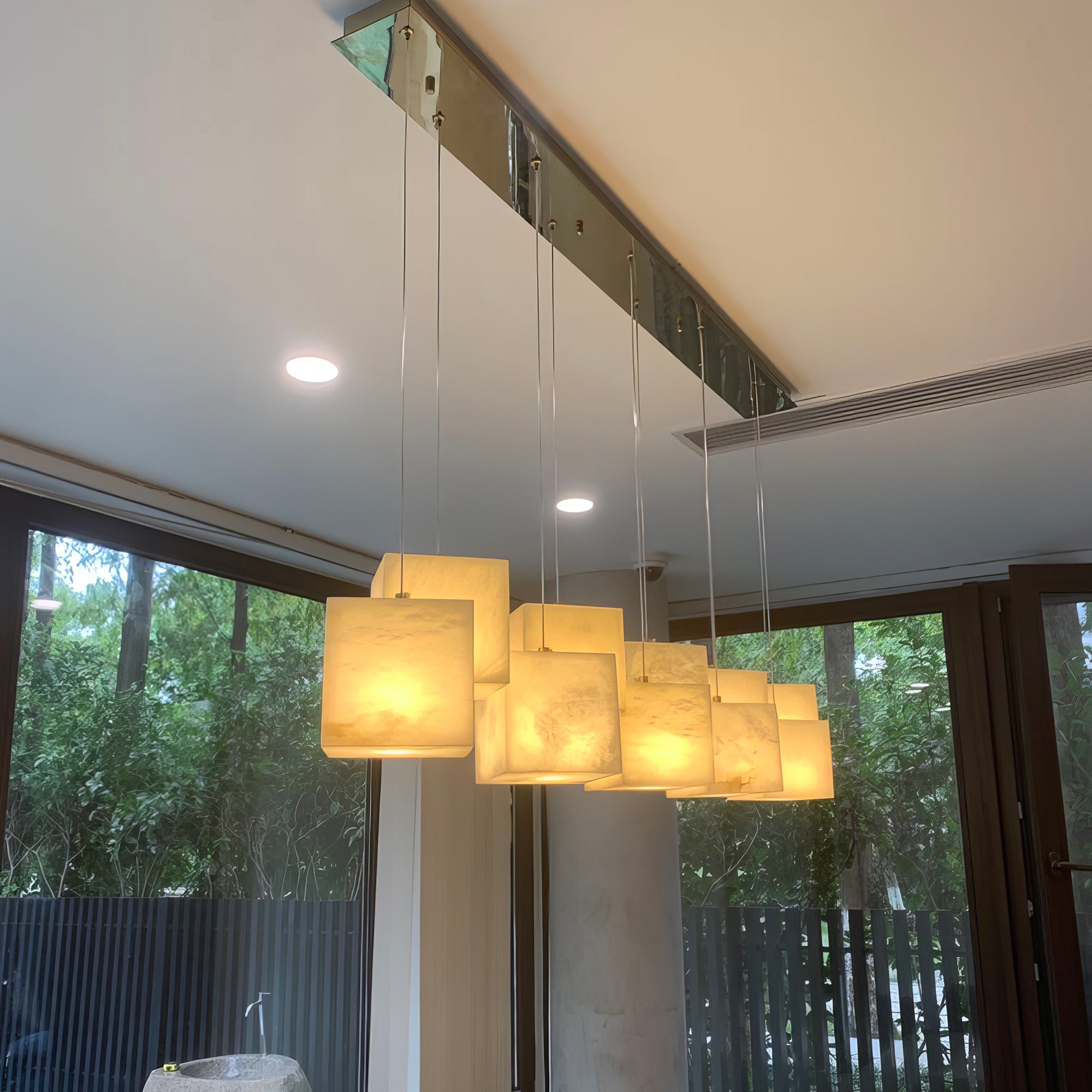 Elevate your space with the Alabaster Cube Box Chandelier. Its cubic, alabaster shade radiates a pearl-like glow, creating a stunning focal point. Versatile and eye-catching, this chandelier can be customized with different quantities to suit your unique style. Add a touch of elegance to any room.