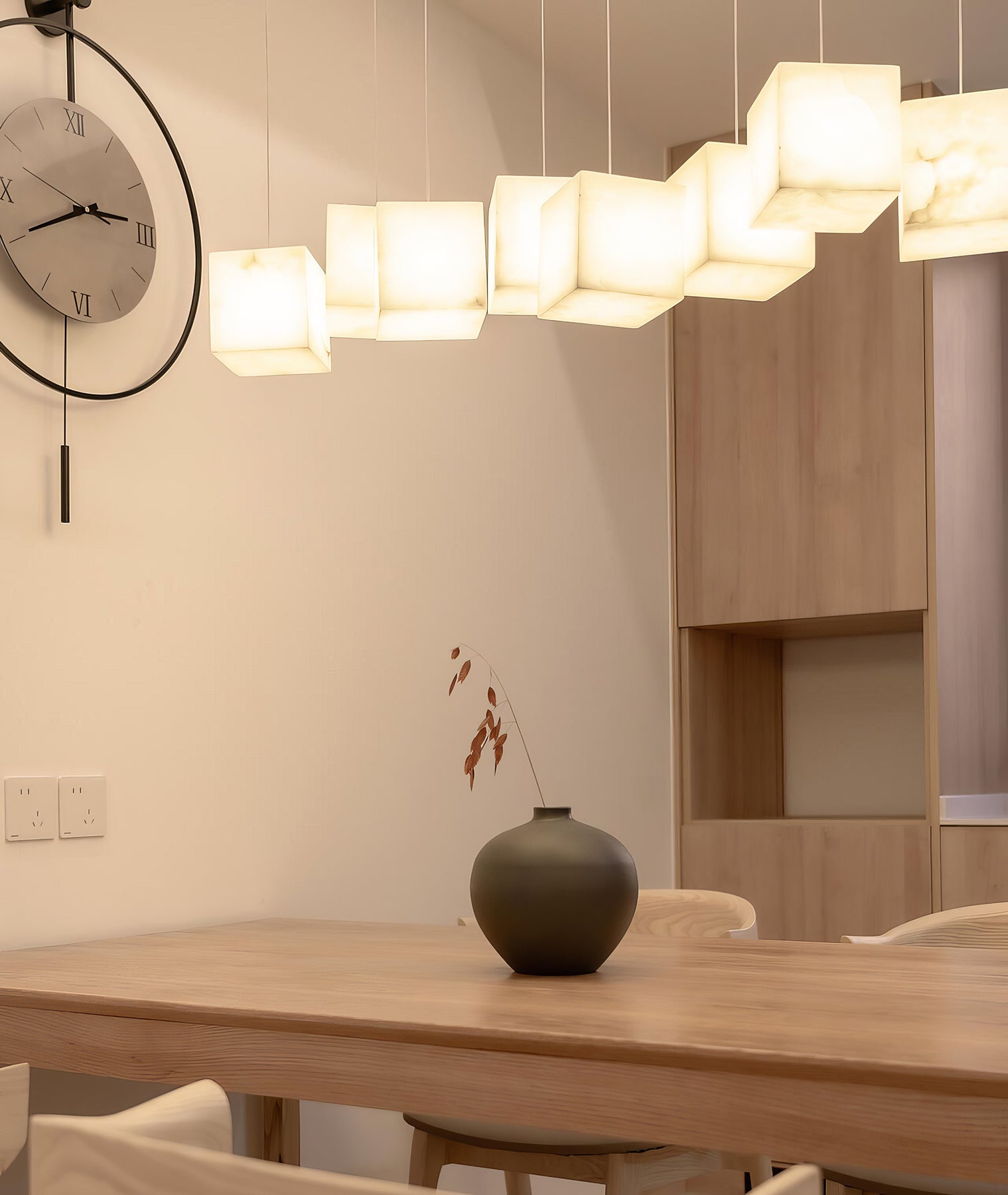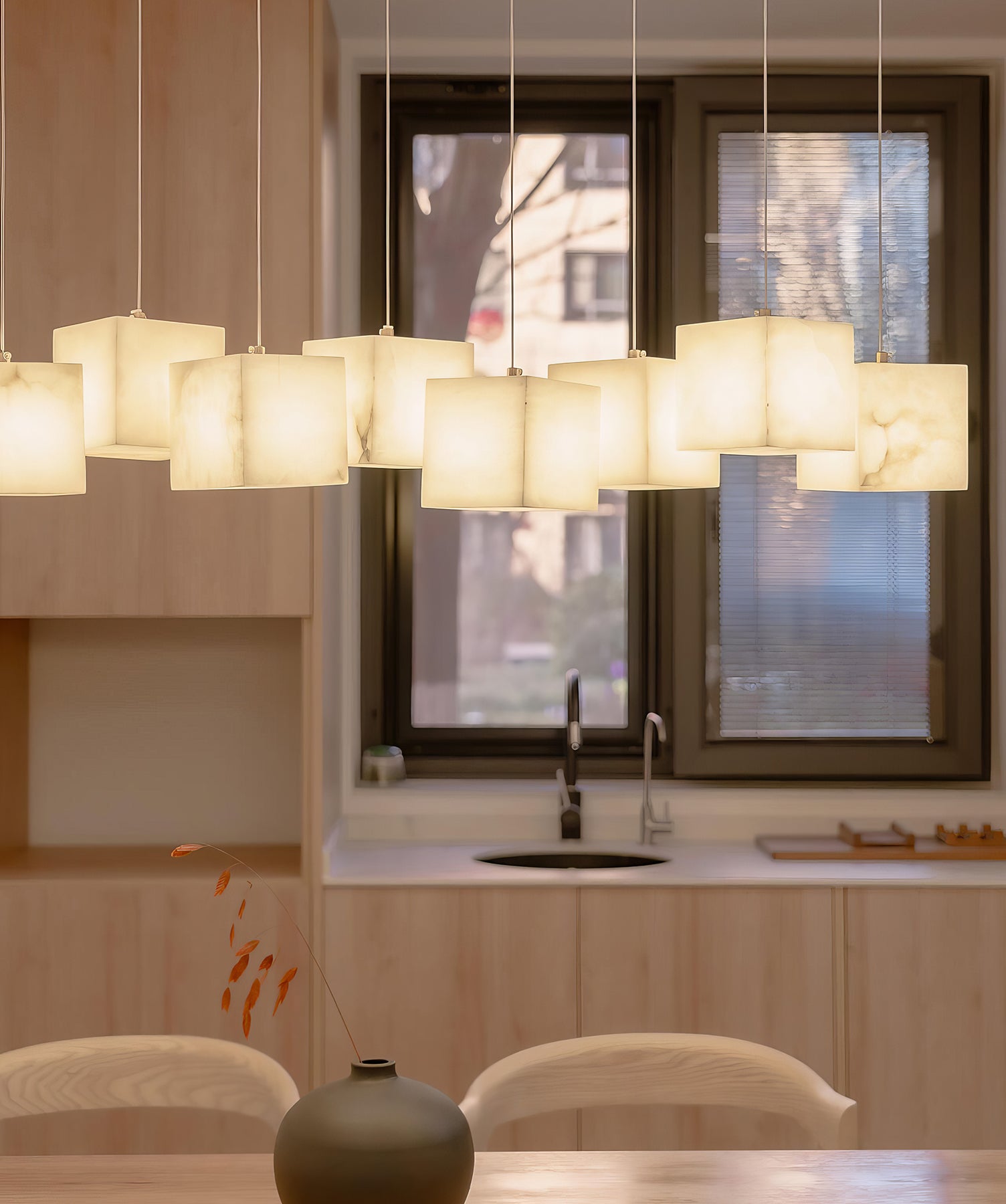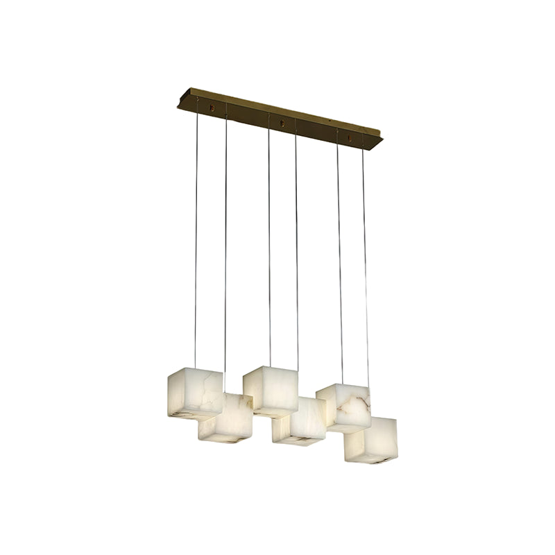 Elevate your space with the Alabaster Cube Box Chandelier. Its cubic, alabaster shade radiates a pearl-like glow, creating a stunning focal point. Versatile and eye-catching, this chandelier can be customized with different quantities to suit your unique style. Add a touch of elegance to any room.