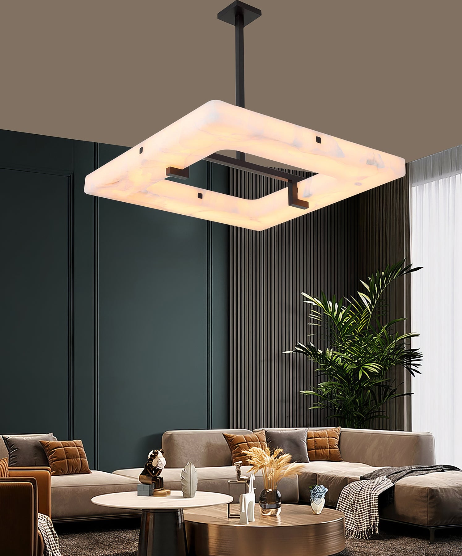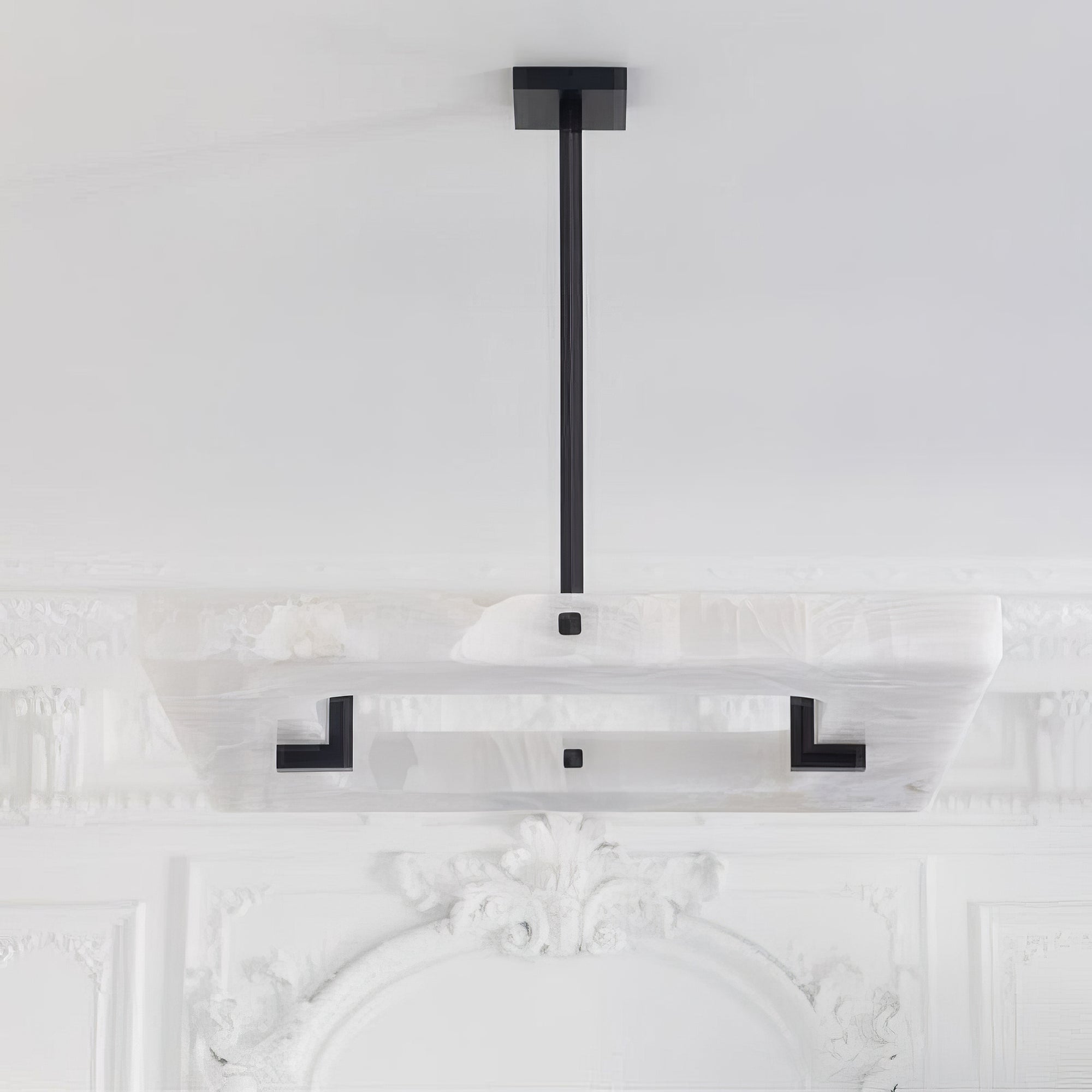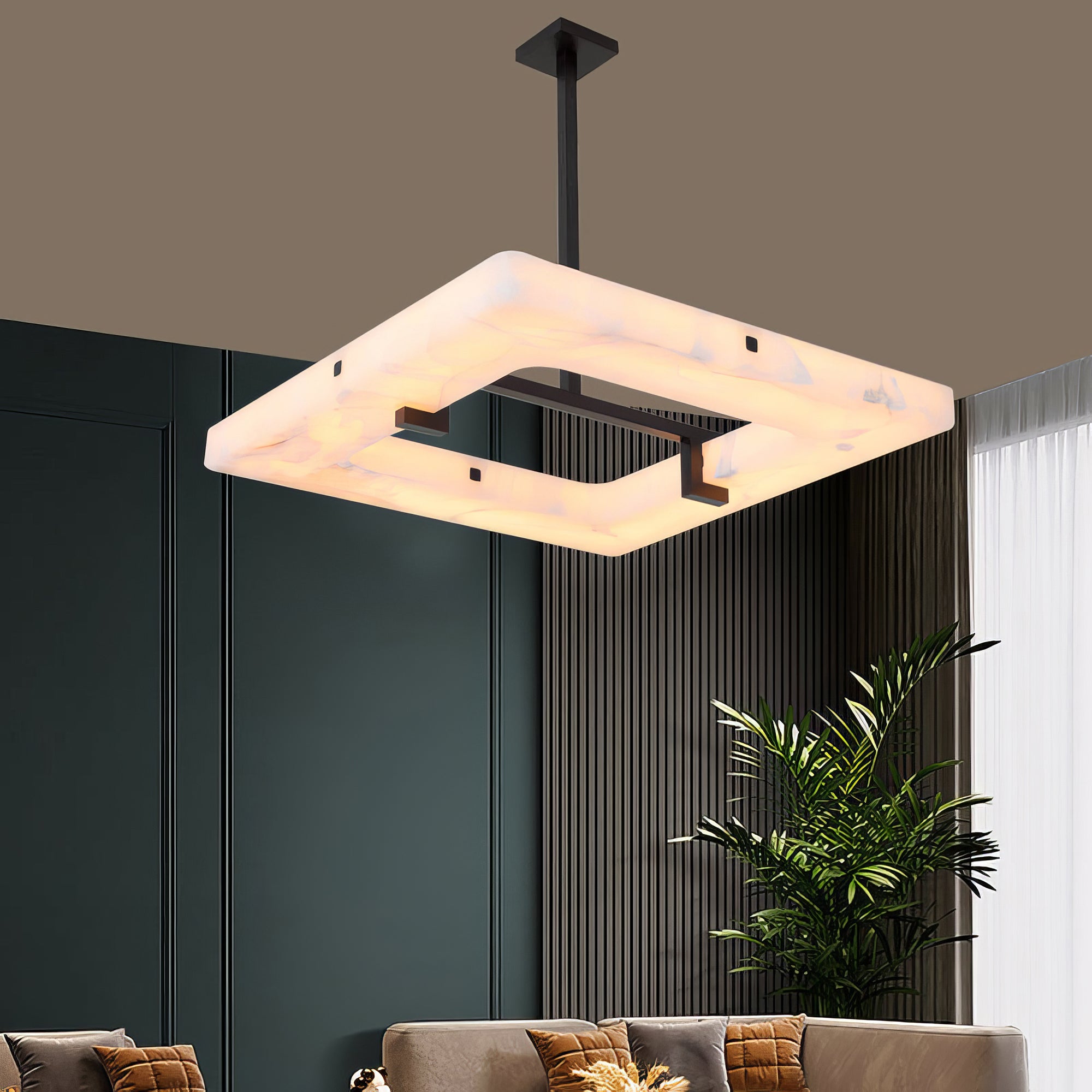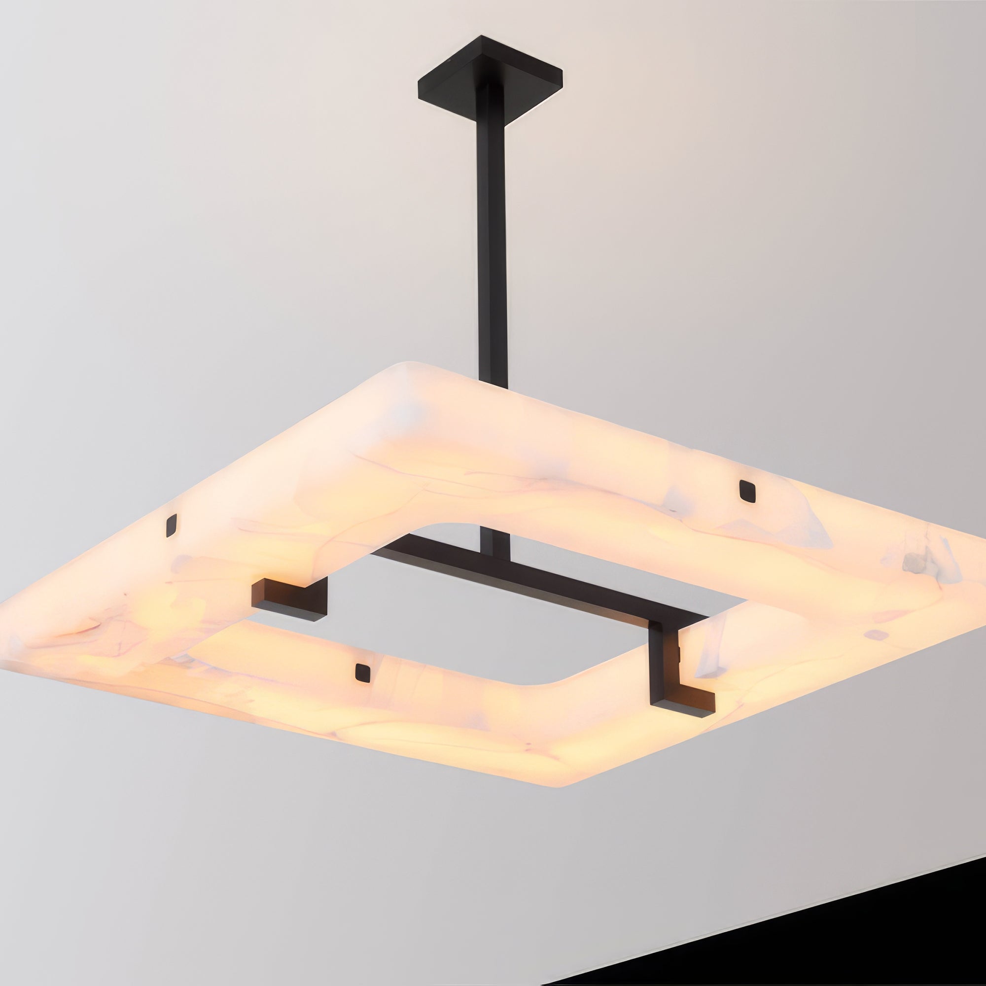 Elevate your decor with our Alabaster Square Modern Chandelier! Its sleek, geometric design and elegant alabaster material will bring sophistication to your living room. Expertly crafted, this statement piece adds an elevated ambiance to any space. Upgrade your home with this must-have chandelier!