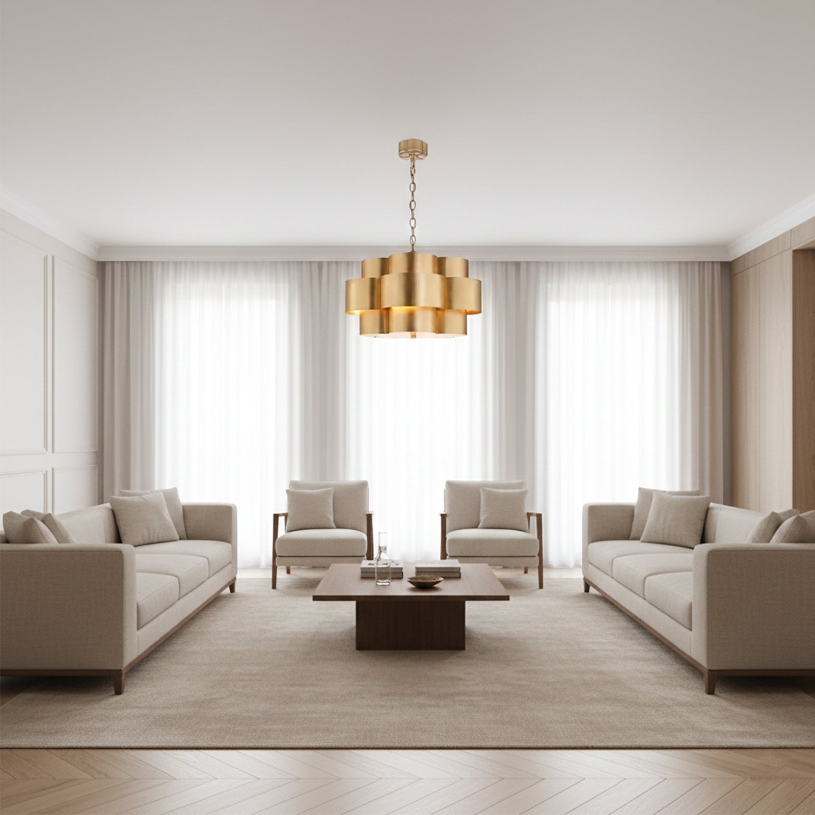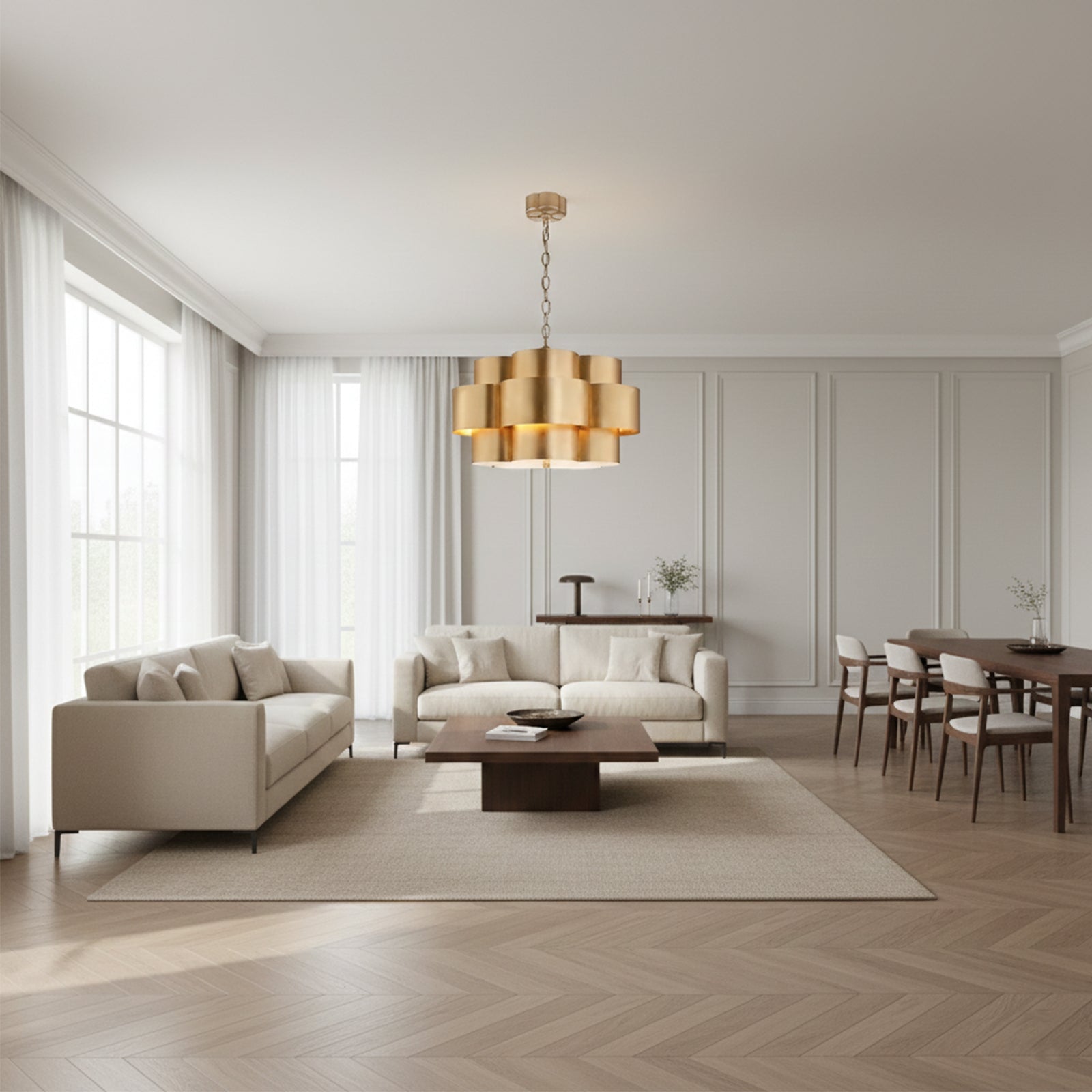 Most importantly, when choosing a chandelier, consider the room’s proportions, function, and personal preferences to ensure that it not only meets lighting needs but also complements the overall room design.