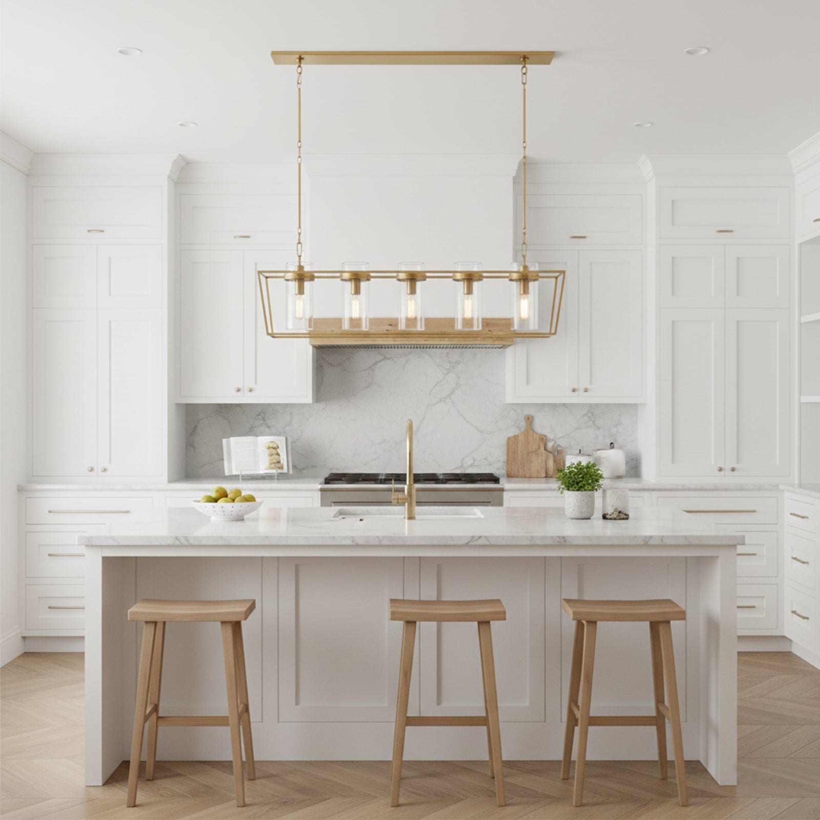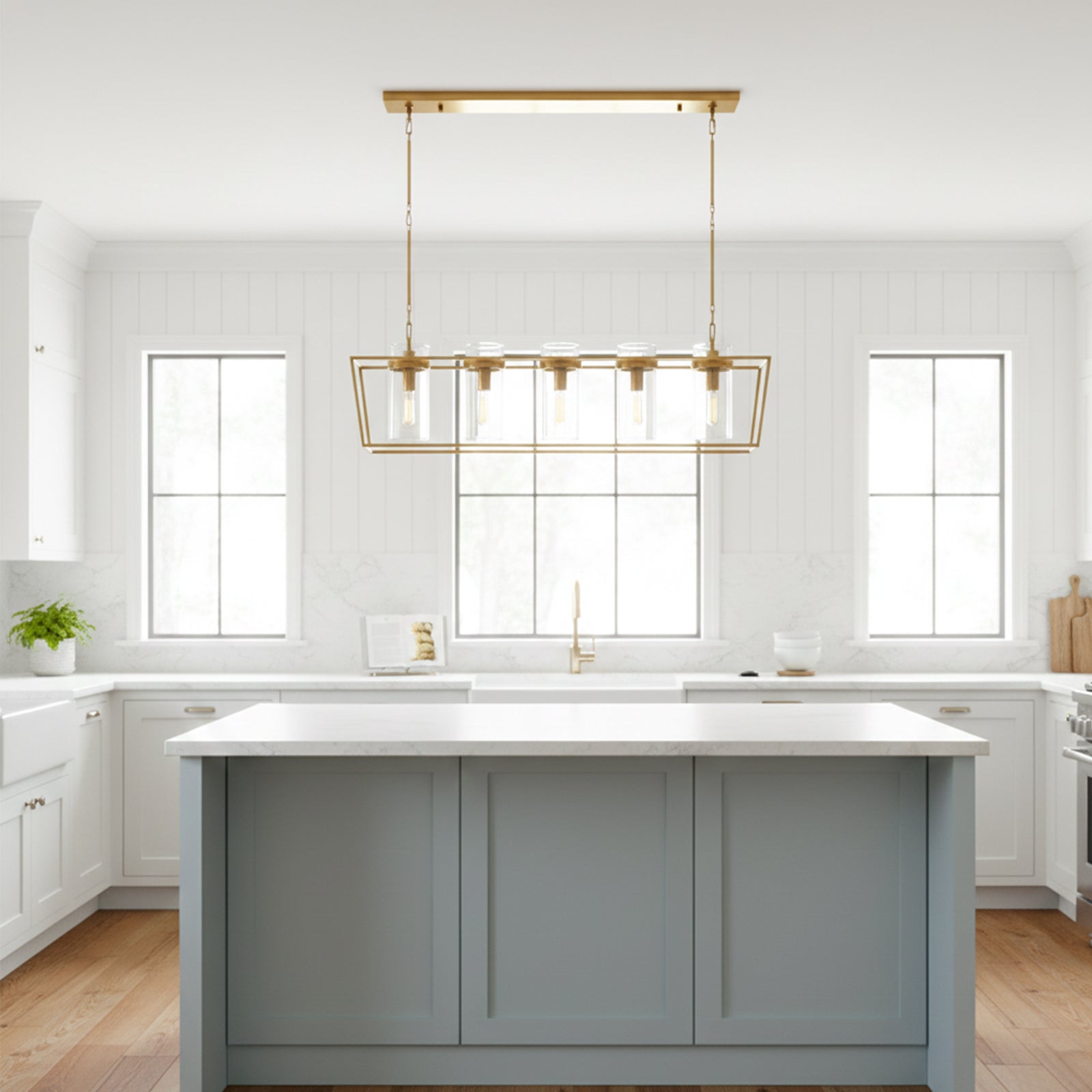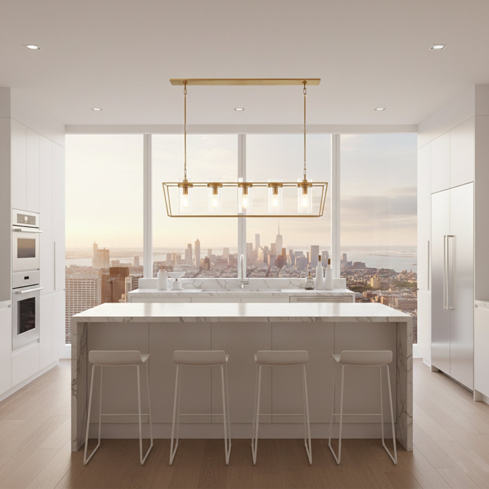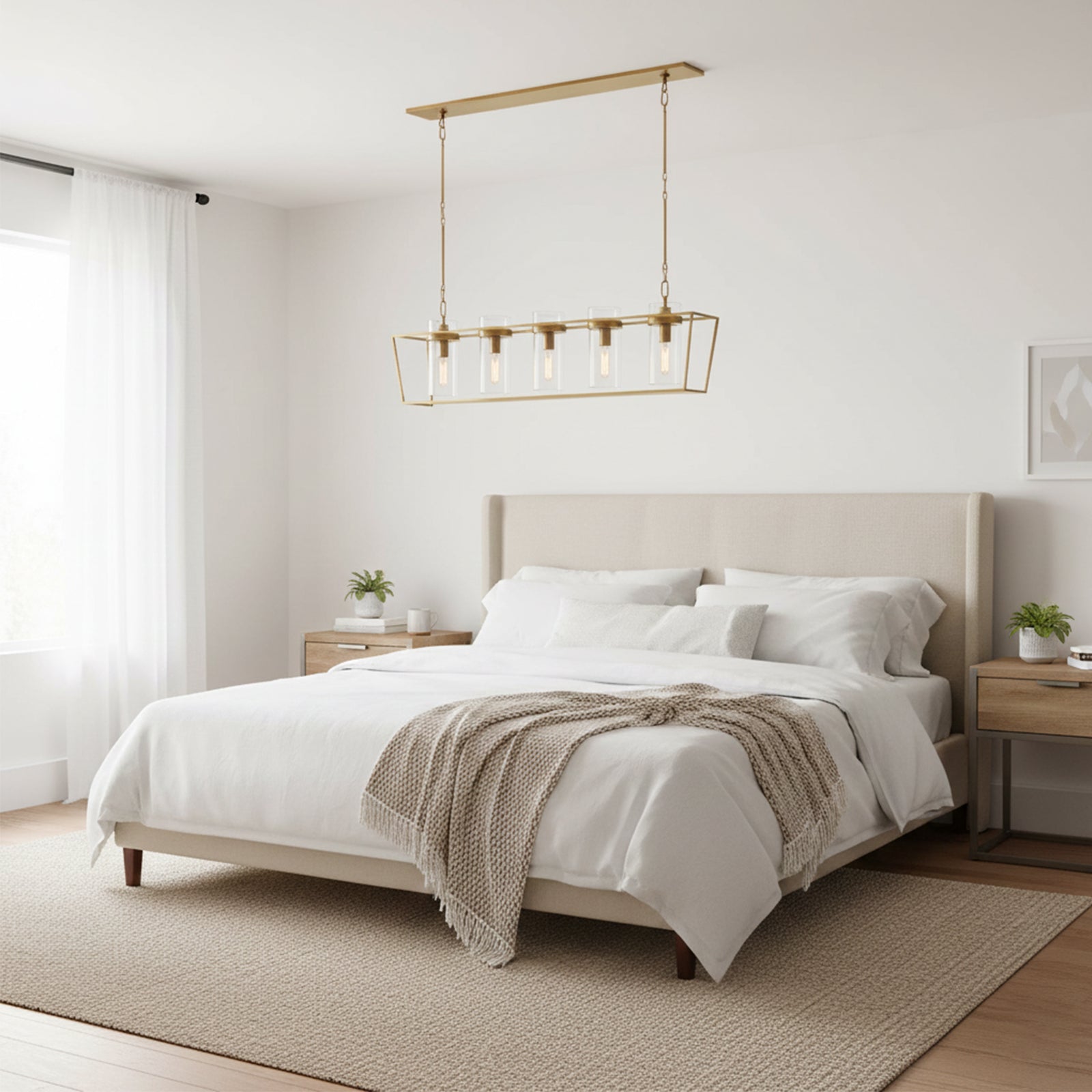 Enhance your space with the Linear Glass Cylinder Chandelier! Crafted with a sturdy metal band and elegant glass components, this chandelier adds both brightness and sophistication to any interior. The arrangement of five glass cylinders creates a beautiful, refined effect, suspended from central and connecting rods. This striking linear design is perfect for illuminating dining tables or large living areas, instantly elevating the space.