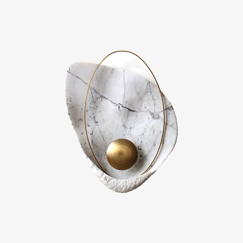 The Artisan Shell Marble Wall Sconce is a captivating blend of elegance and artistry, designed to elevate any interior space. This unique fixture features a beautifully veined marble backplate shaped like an organic shell, with natural gray swirls that add depth and texture. Accented by a central brass sphere, the sconce casts a warm, ambient glow that highlights the marble's intricate patterns. A delicate brass frame gracefully arches around the fixture, adding a touch of sophistication and luxury. Ideal for bedrooms, hallways, or living spaces, this wall sconce brings a refined, sculptural element to modern and classic interiors alike.