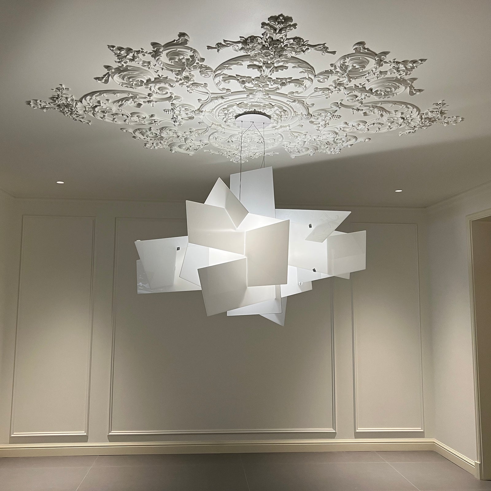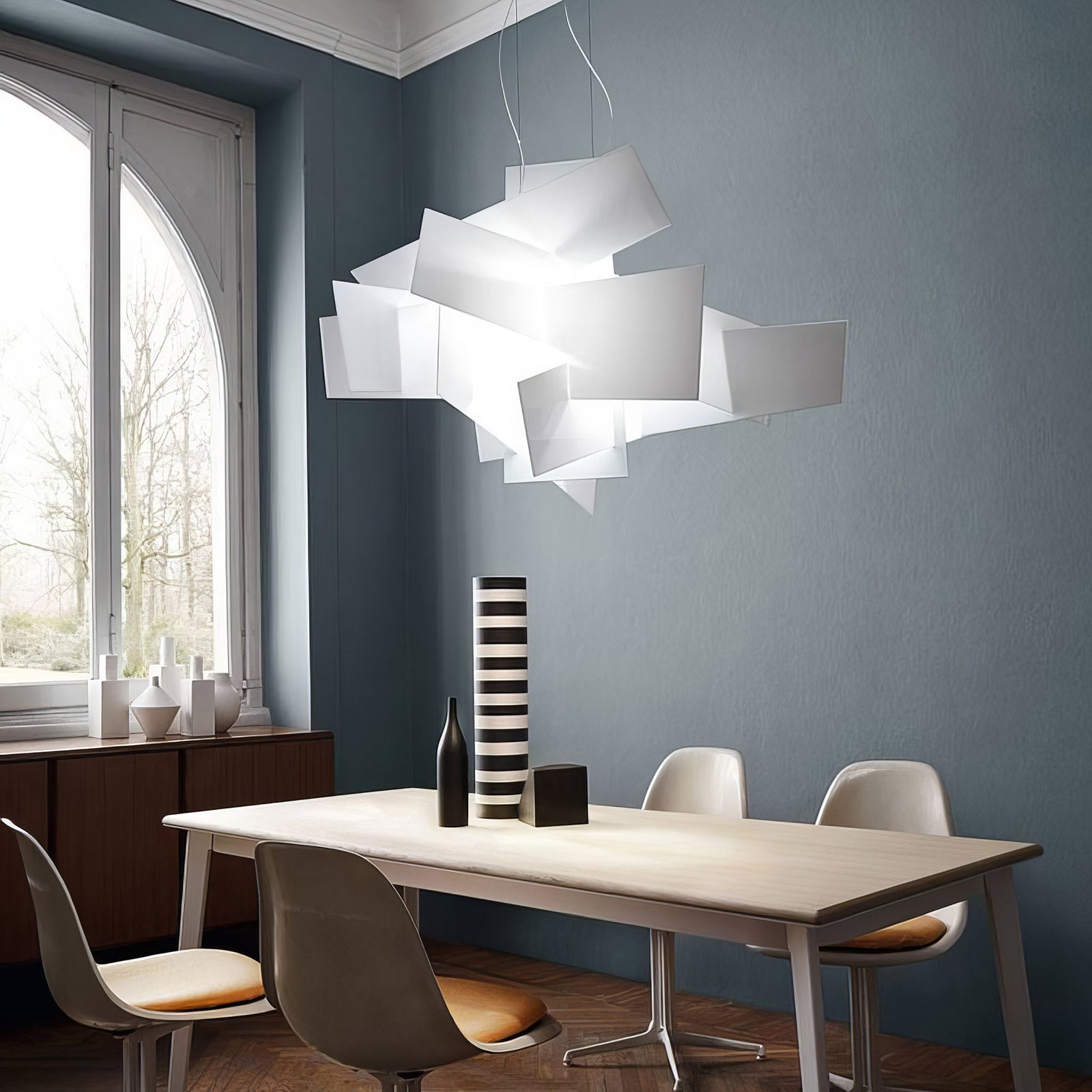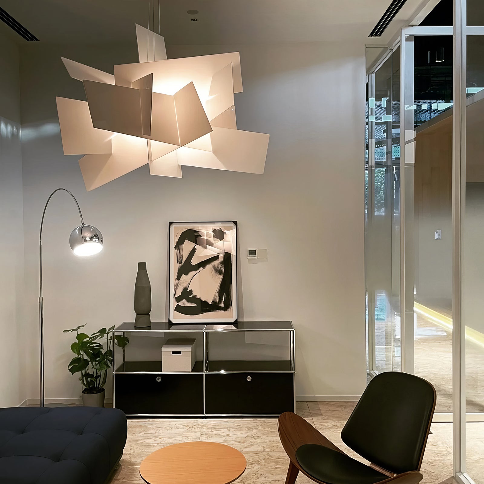 Elevate your space with the Big Bang chandelier. Designed by top creatives, its unique rectangular light plates create a captivating interplay of light and shadow. Infused with energy and visual impact, this lamp is a true showstopper. Experience unparalleled design with the Big Bang chandelier.