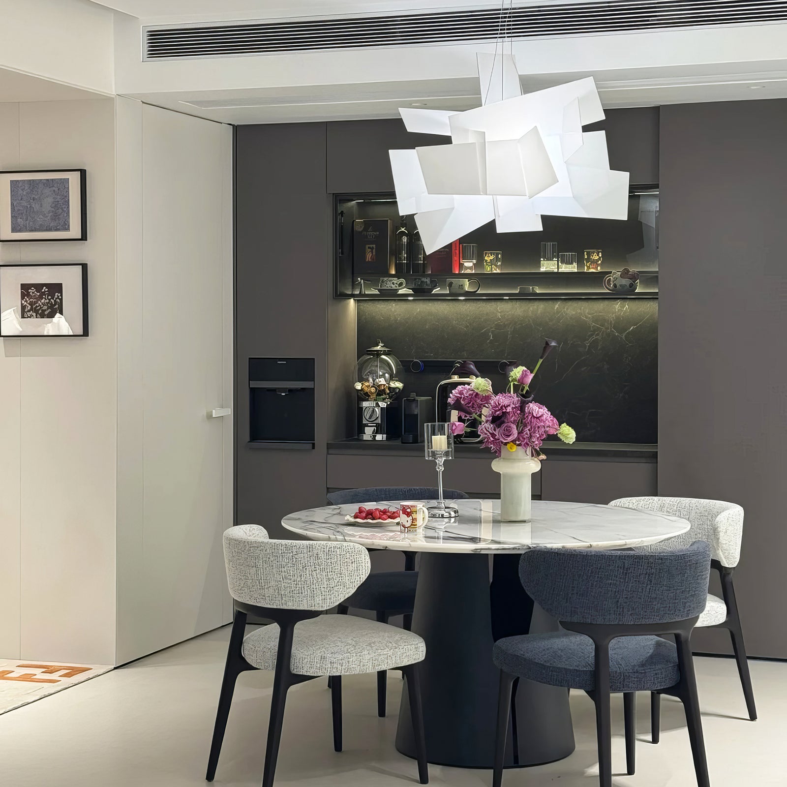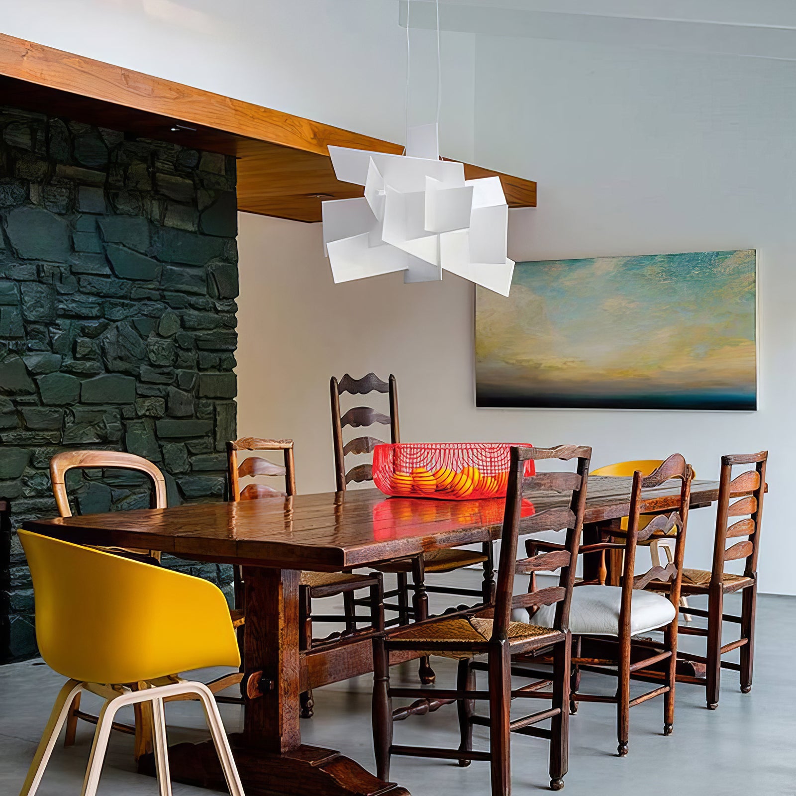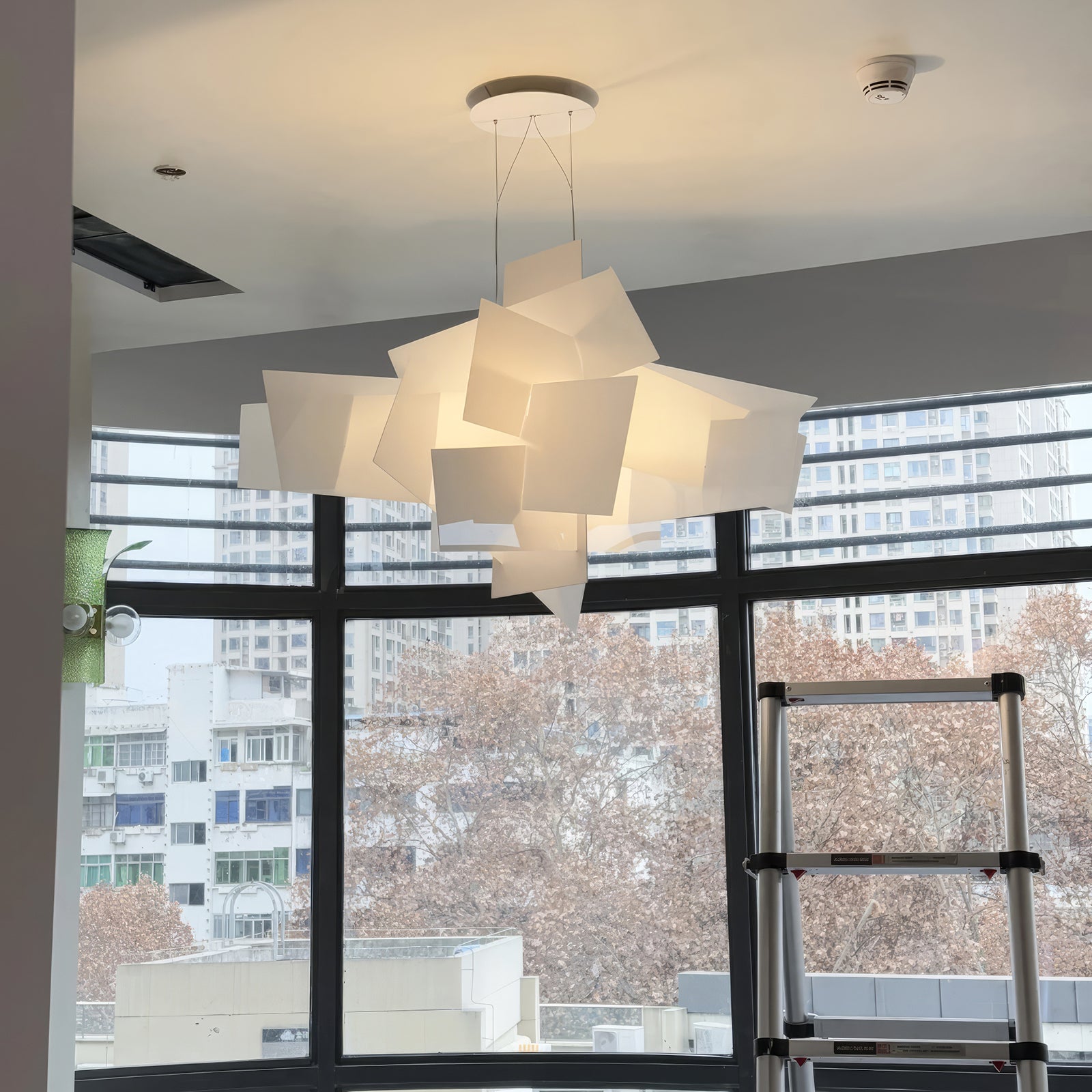 Elevate your space with the Big Bang chandelier. Designed by top creatives, its unique rectangular light plates create a captivating interplay of light and shadow. Infused with energy and visual impact, this lamp is a true showstopper. Experience unparalleled design with the Big Bang chandelier.