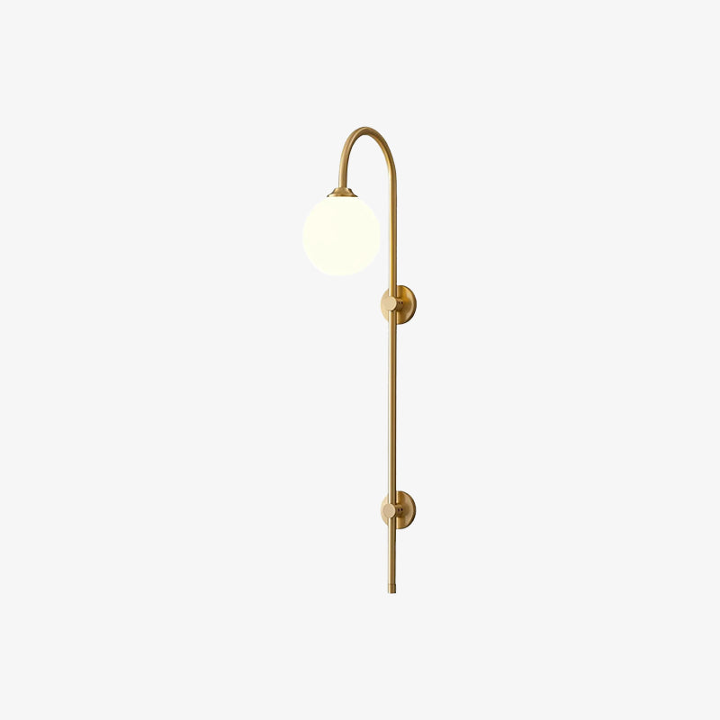 Illuminate your space with the refined elegance of our Brass Globe Arm Wall Sconce. Featuring a sleek gold stem and a radiant white glass globe, this fixture brings subtle drama to any room. The brass finish adds a hint of vintage charm, making it the perfect statement piece for your dining area or hallway. The non-dimming light casts a gentle, glowing ambiance, adding both style and functionality to your decor.