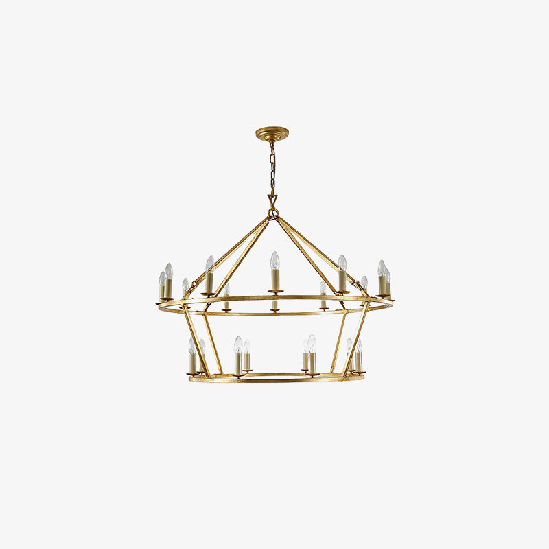 The Brass Tiered Chandelier boasts a durable wrought brass finish and a classic Wagon Wheel shape, making it a refined choice for any interior. With 20 lights, this chandelier offers a clean and elegant silhouette that will elevate any space. It seamlessly blends traditional, transitional, and contemporary styles, making it a versatile and timeless addition to your home.