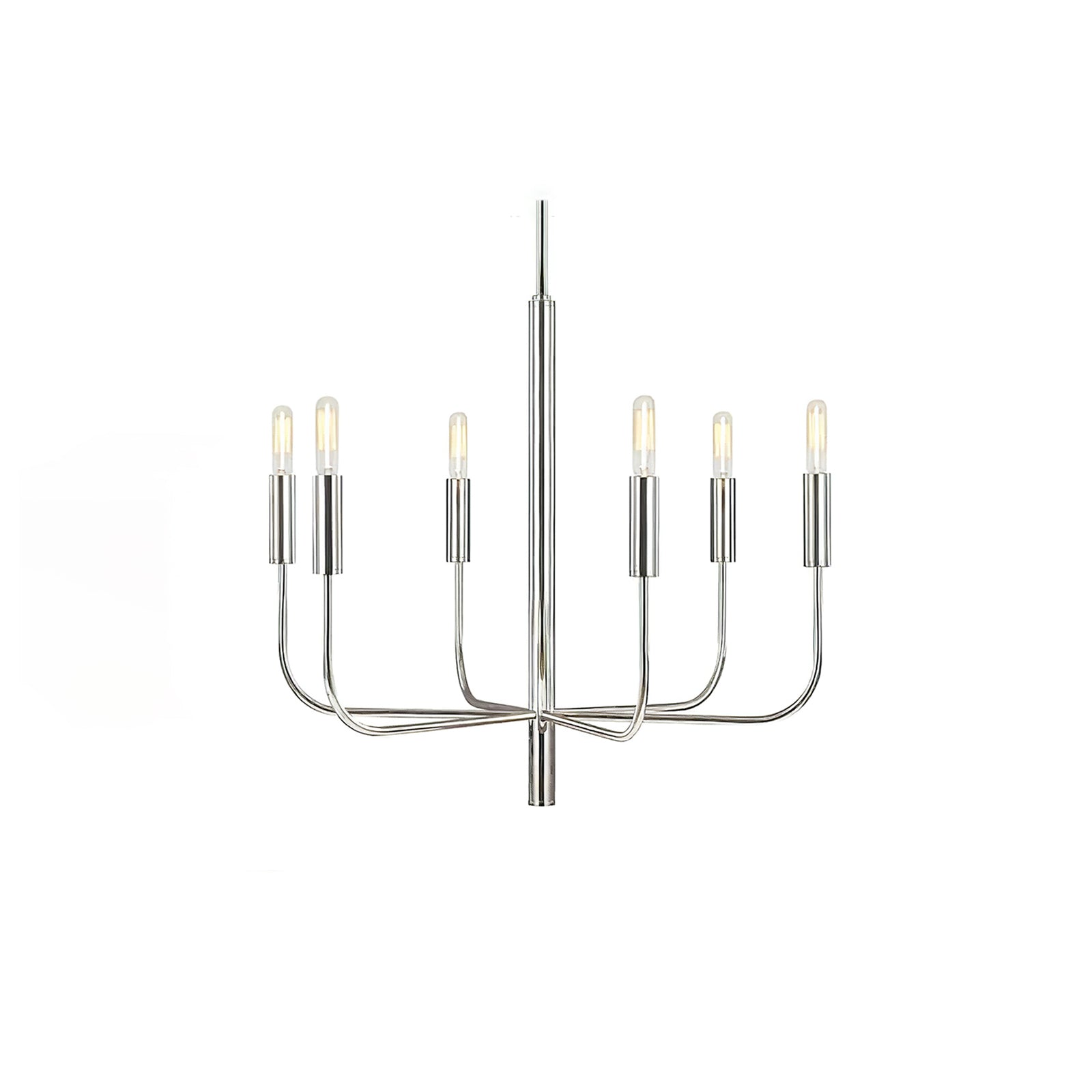 The Brianna chandelier offers a sophisticated balance of modern and classic elements. With its smooth, uninterrupted lines and tubular arms, this fixture evokes a sense of fluidity and harmony. The minimalist silhouette, highlighted by its polished finish, adds an understated yet impactful charm to any room, from dining areas to bedrooms.