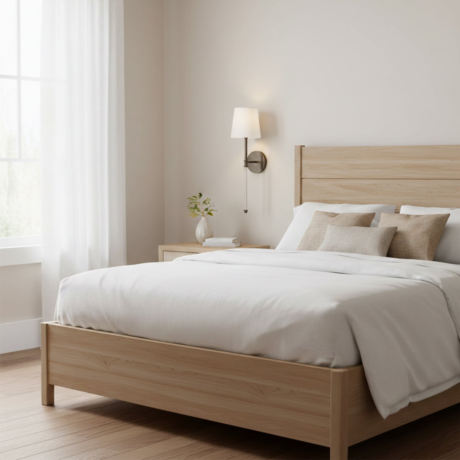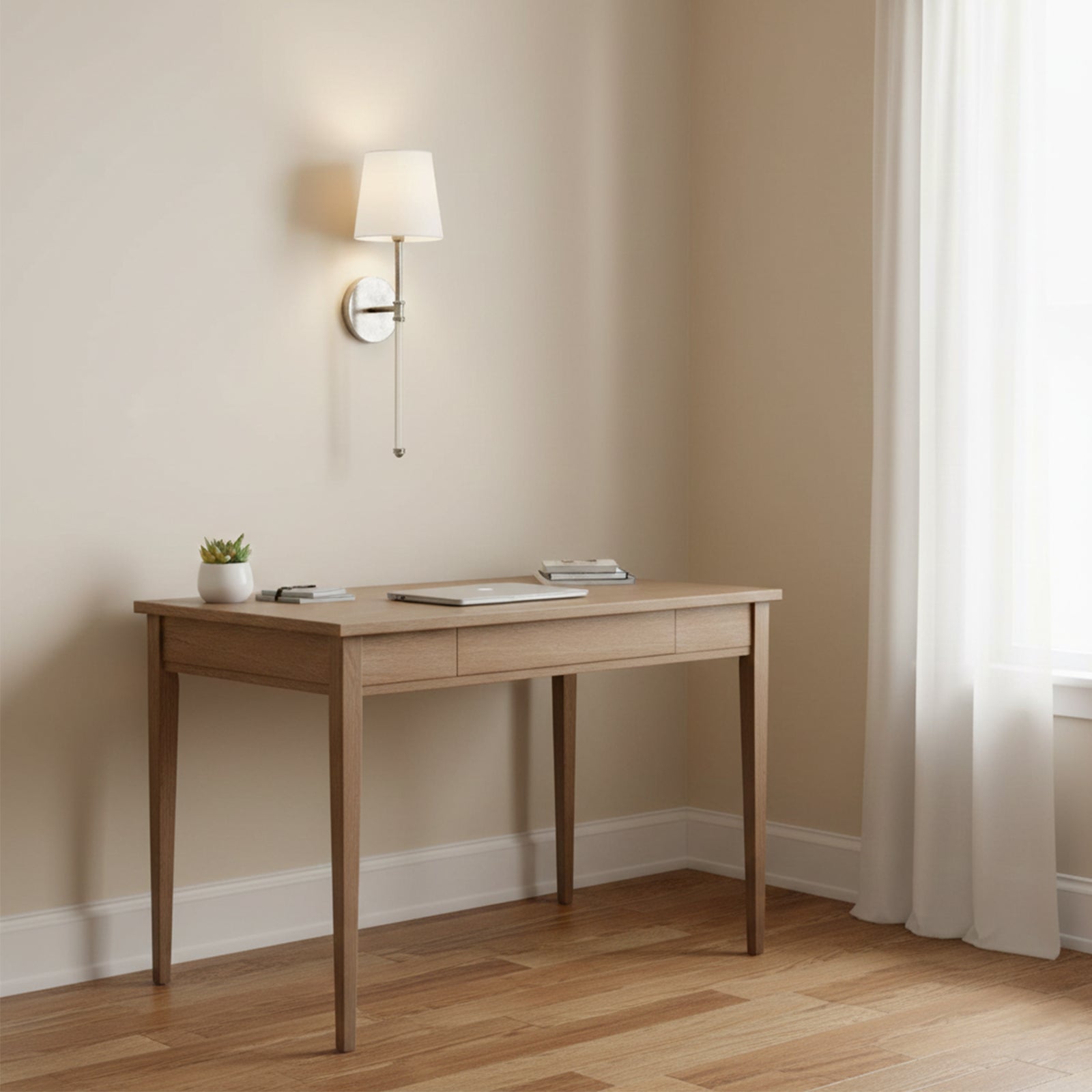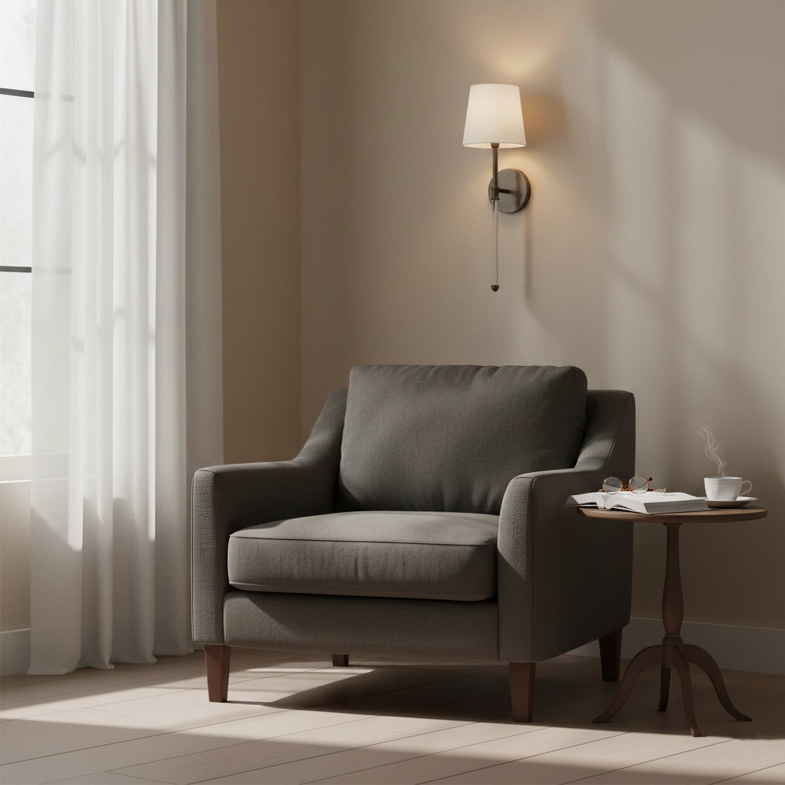 Upgrade your home decor with the Modern Fabric Shade Wall Light. This modern and stylish lamp features a unique design with a tapered shade and a rounded wall plate, creating a balanced and striking look. The fabric shade ensures a soft, warm glow that enhances the ambiance. Add a touch of elegance to any room with this must-have piece, perfect for a contemporary aesthetic.