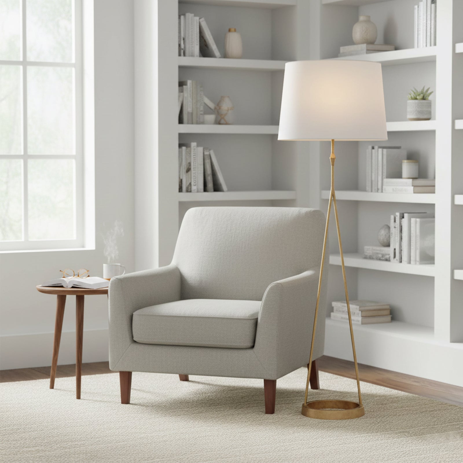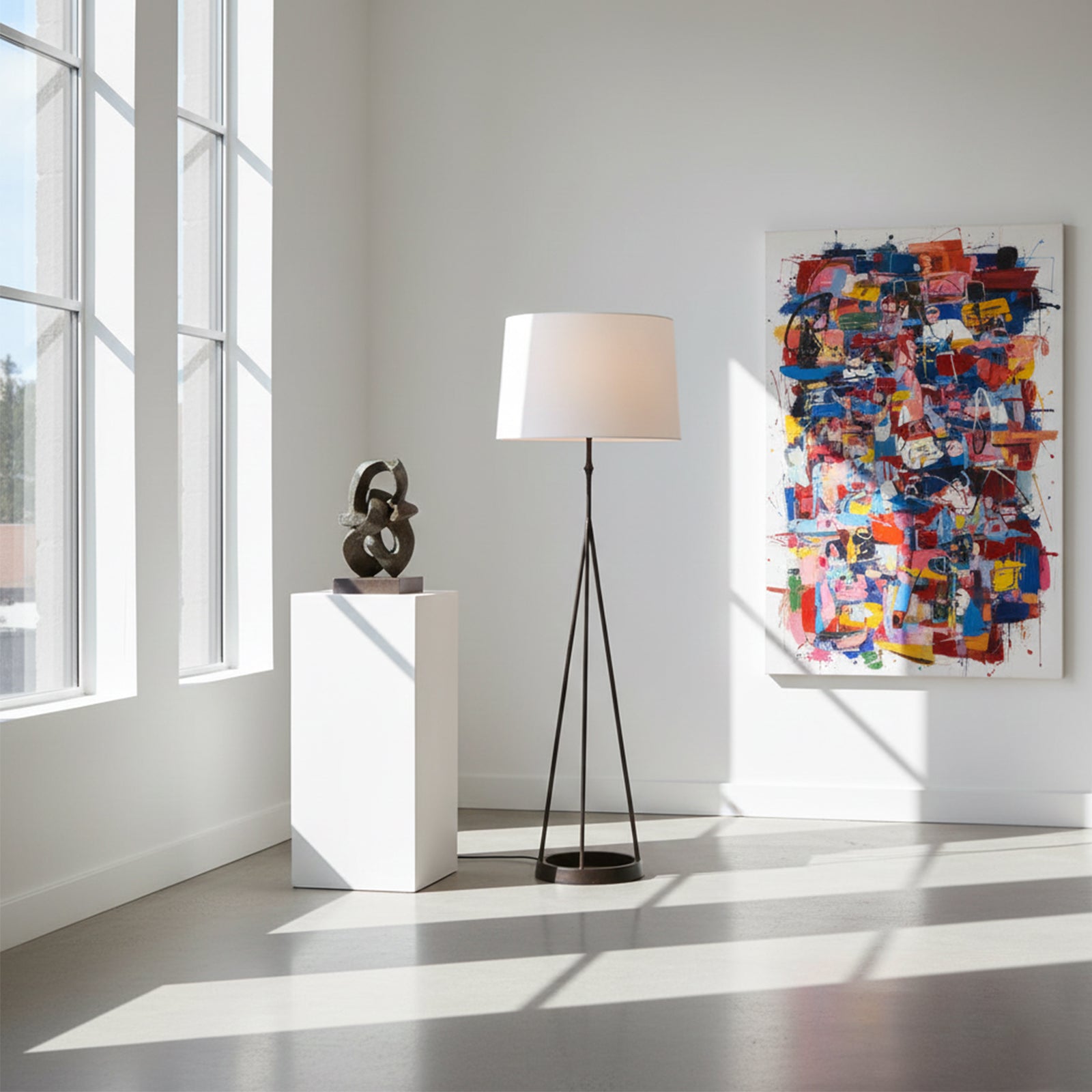 Elevate any space with the Modern Metal Tripod Floor Lamp! Its artistic shape adds a unique touch and inspires creativity. The versatile design allows for multiple perspectives and makes a bold statement in any room. Bring inspiration and modern style to your home with this eye-catching and sculptural lighting piece.
