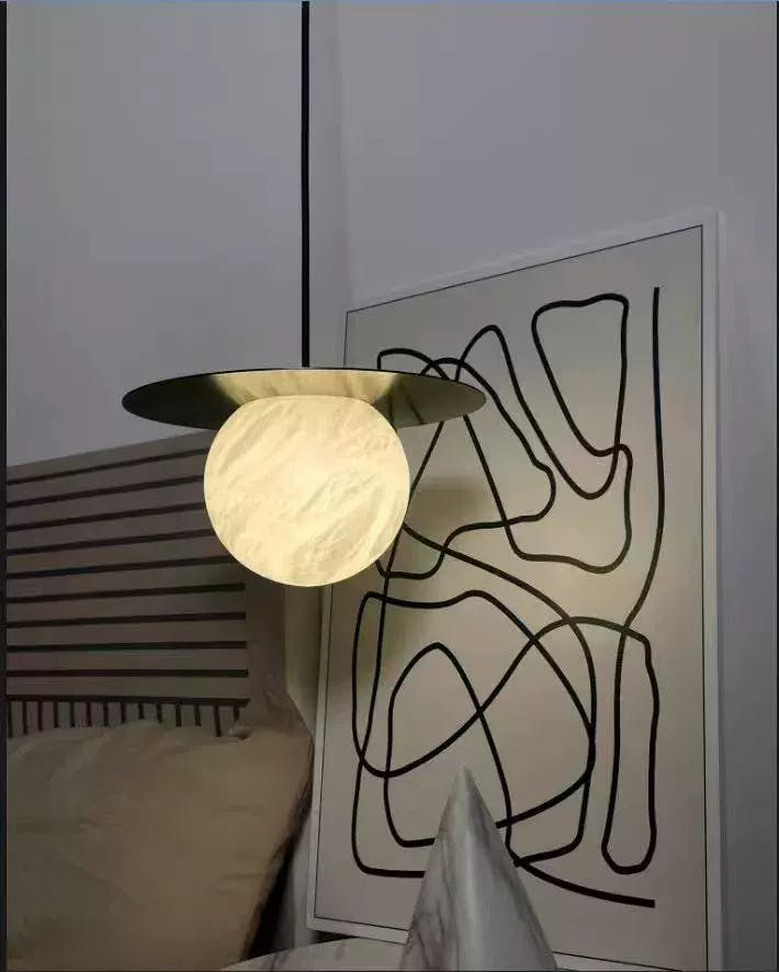 Elevate your decor with the Disc Alabaster Pendant Light from liootrlamp. This contemporary pendant light features a striking alabaster sphere suspended beneath a sleek, golden disc, creating a stunning visual contrast. Perfect for modern interiors, it adds a touch of elegance and sophistication to any room. Ideal for dining areas, kitchens, or living spaces, this pendant light combines artistic design with functional lighting to enhance your home beautifully.