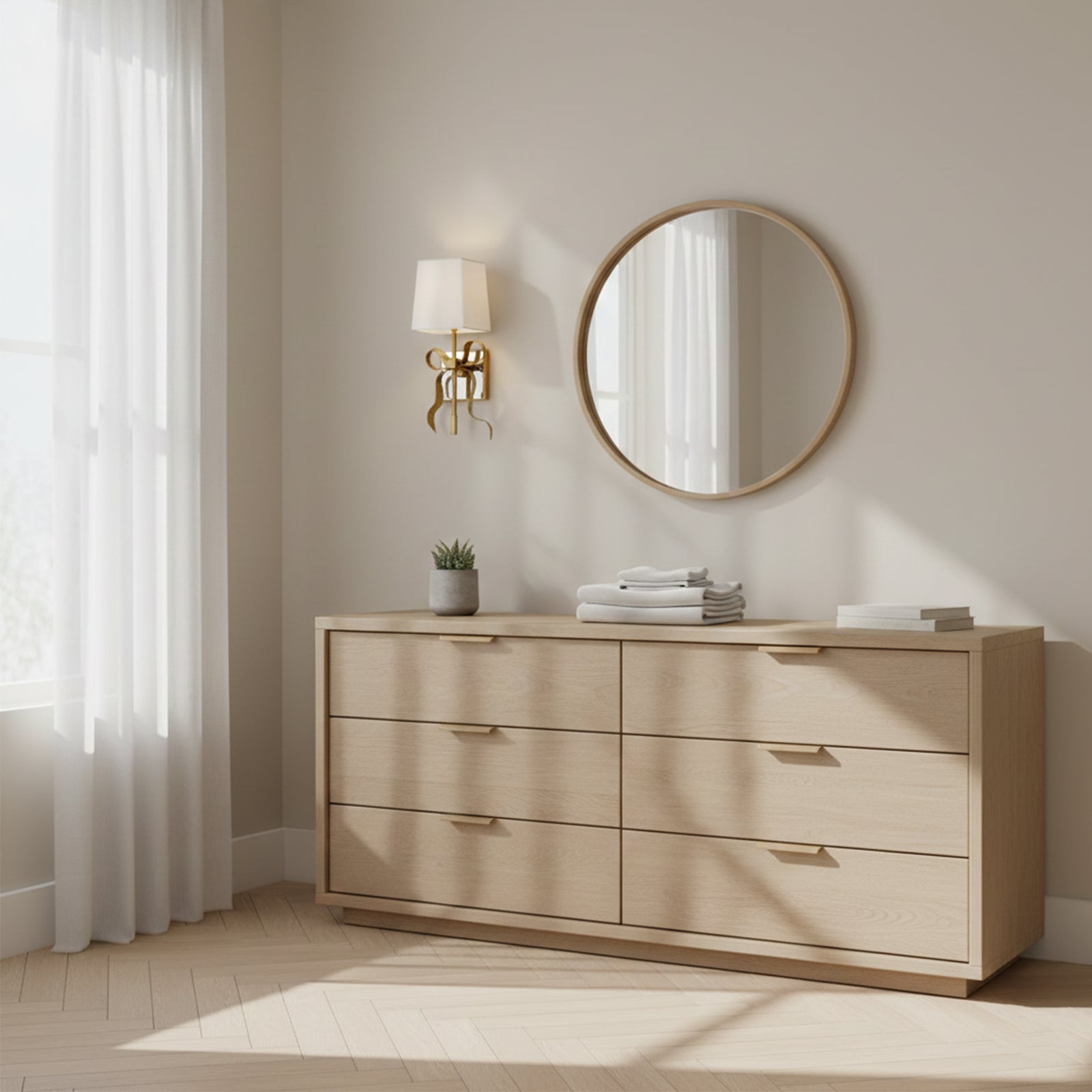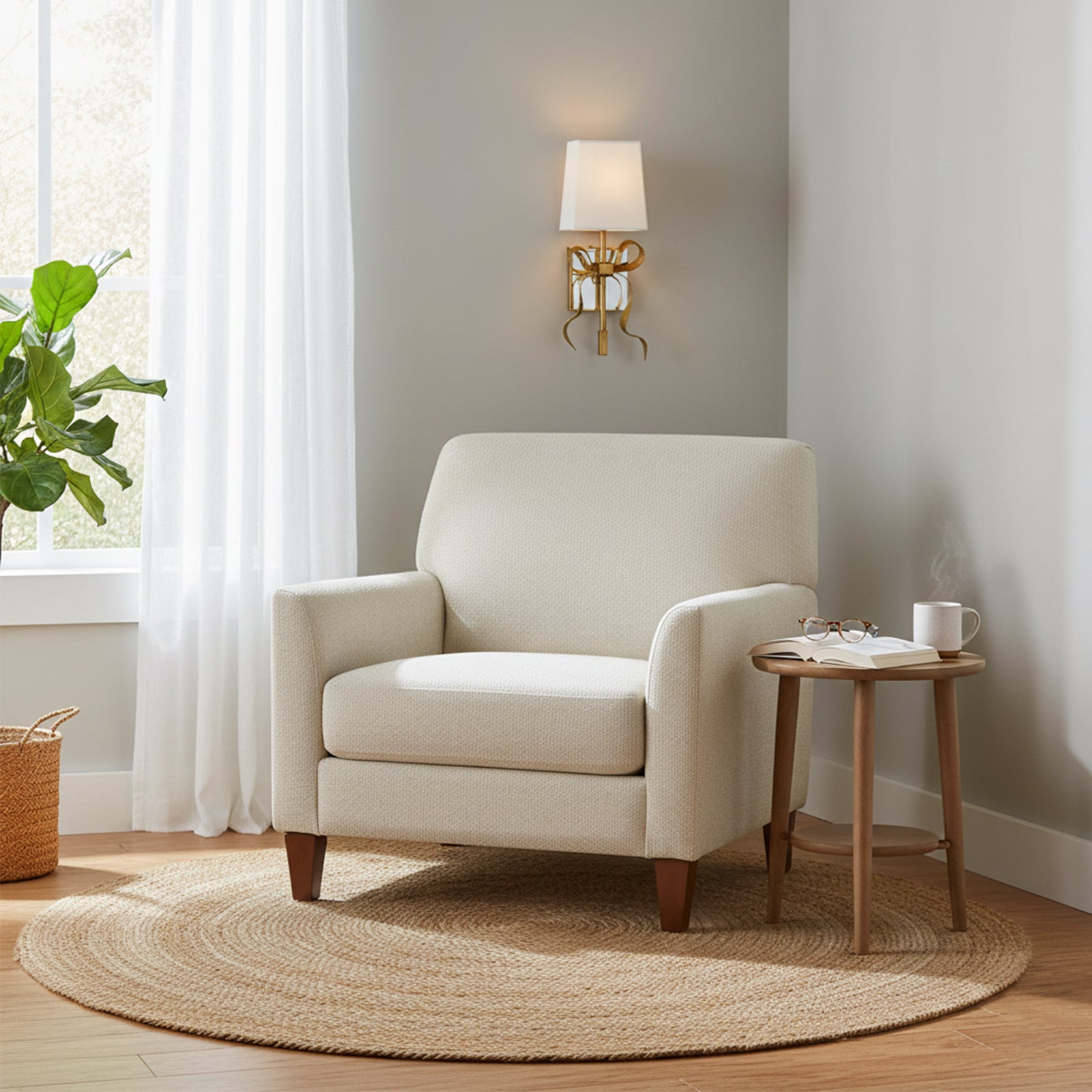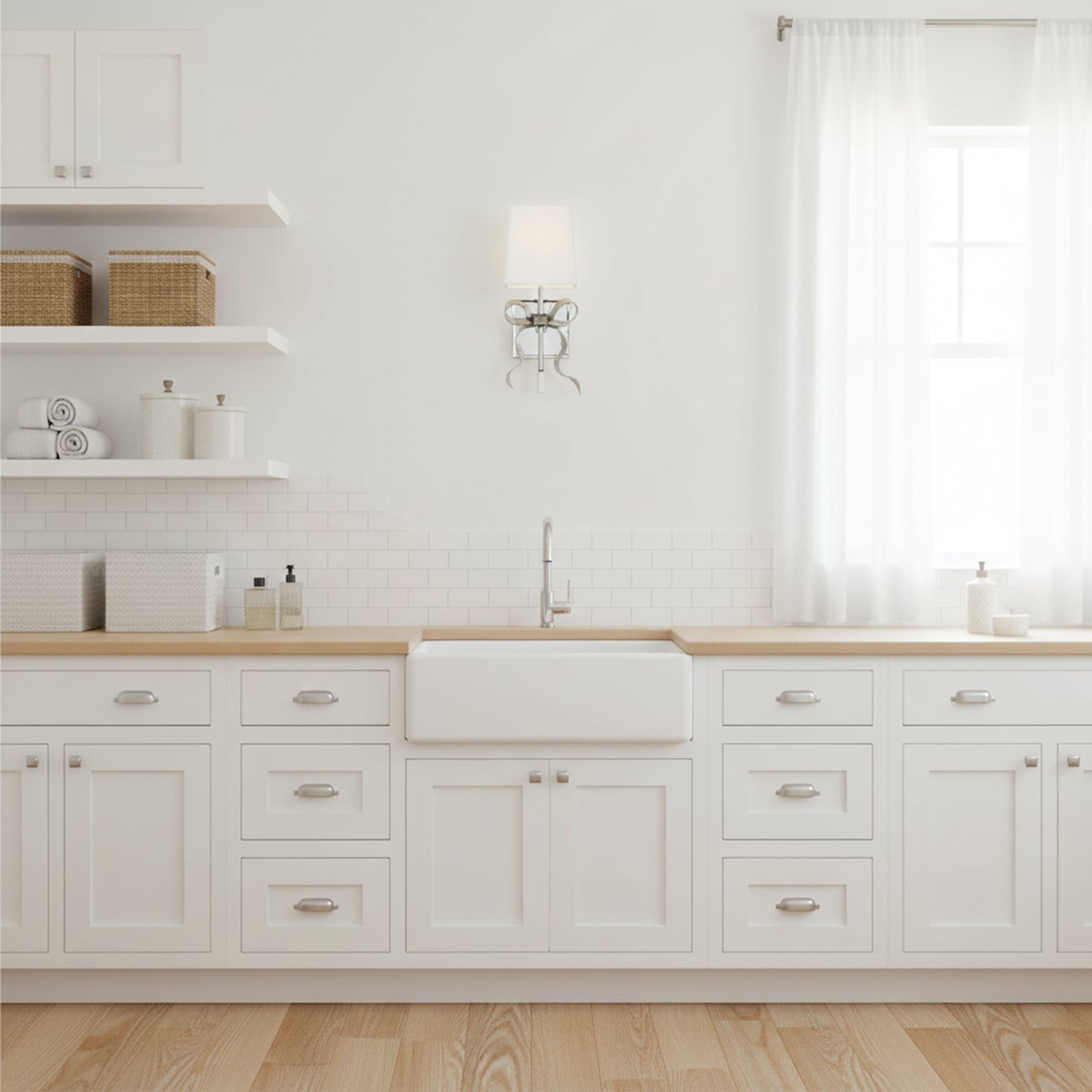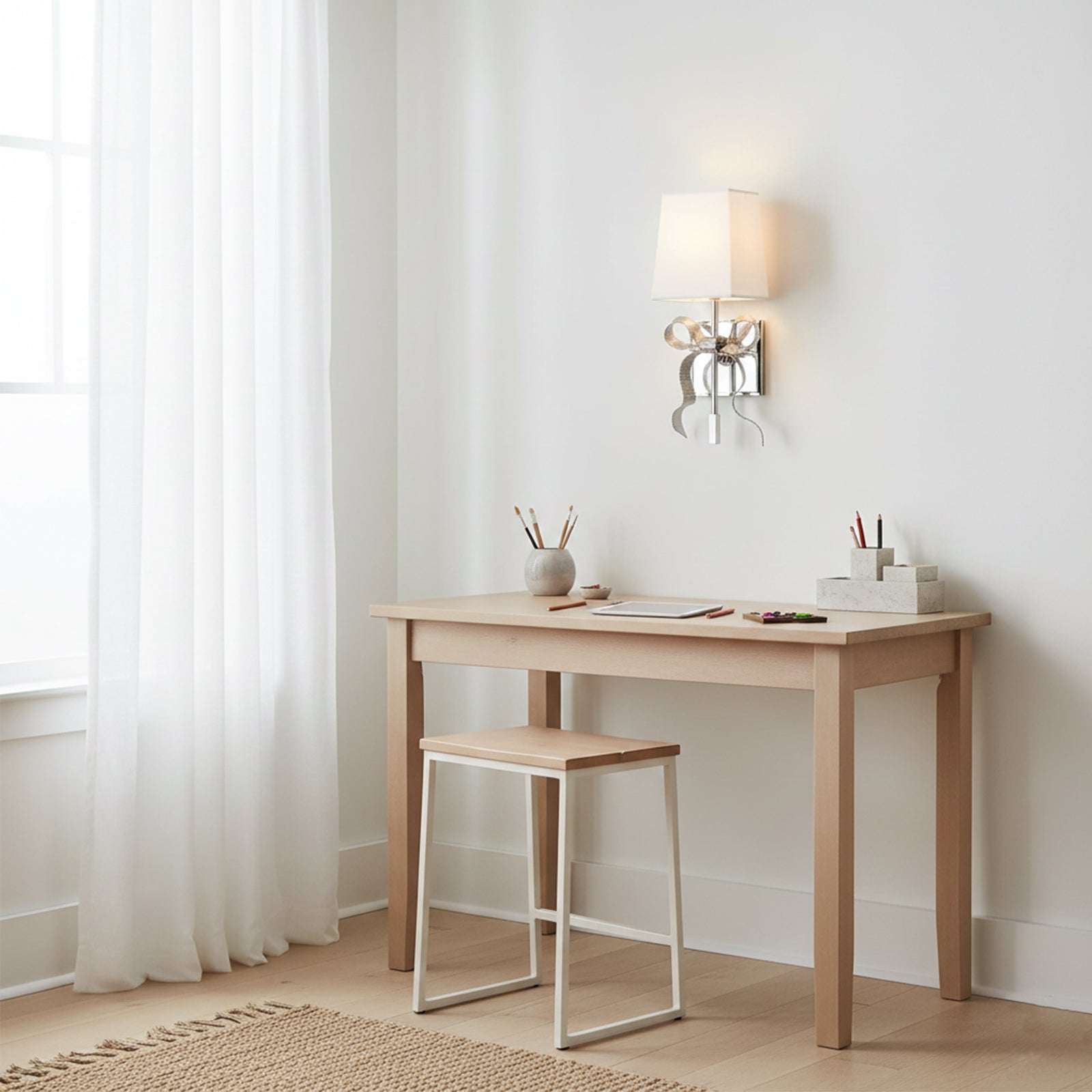 Illuminate your space with the charming Bow Arm Linen Shade Wall Lamp.The fresh linen shade paired with an elegant bow arm exudes a design aesthetic that adds a touch of sophistication and elegance to any room. The fixture's beautiful curve and soft shade combine to create an inviting glow. Let its stunning design inspire your decor!