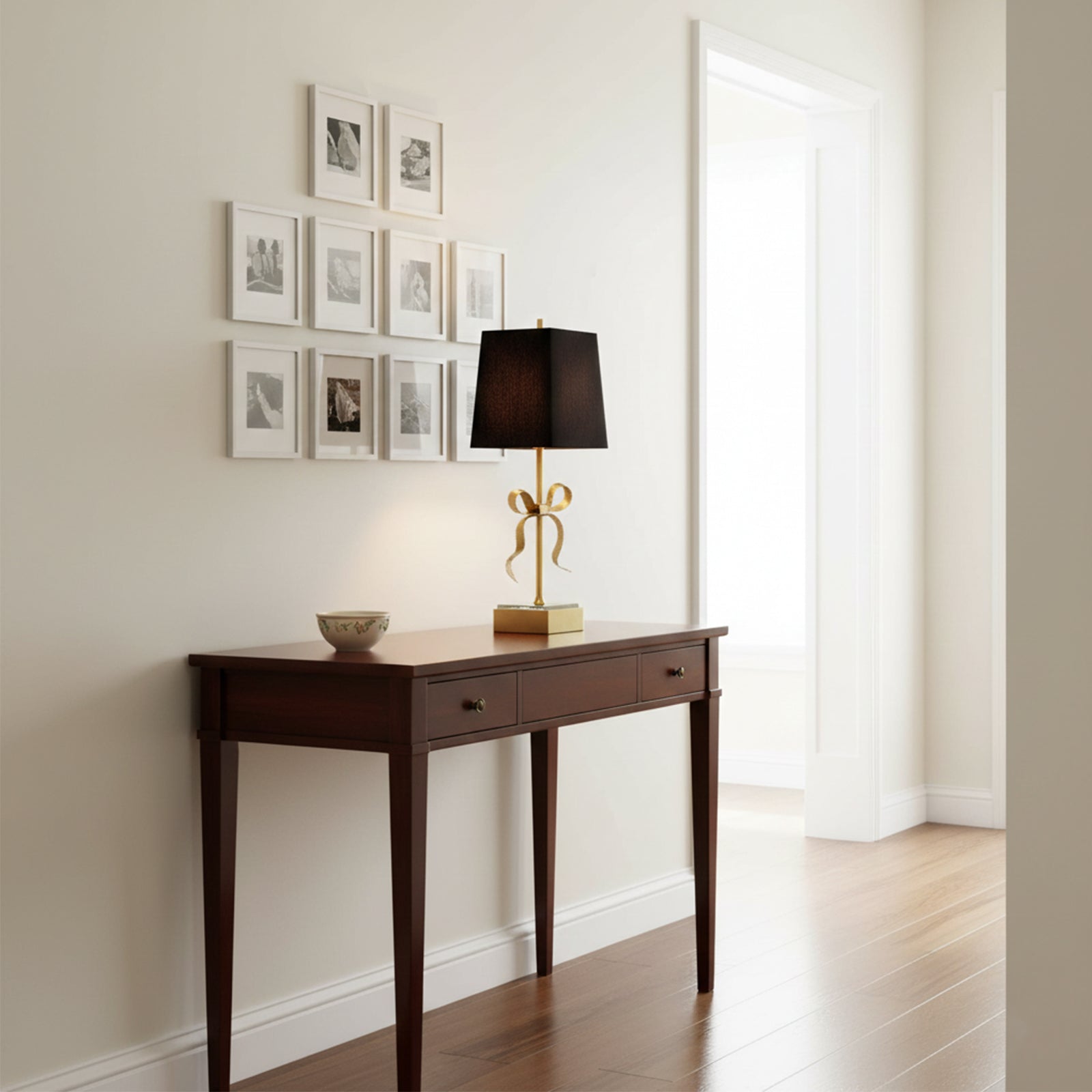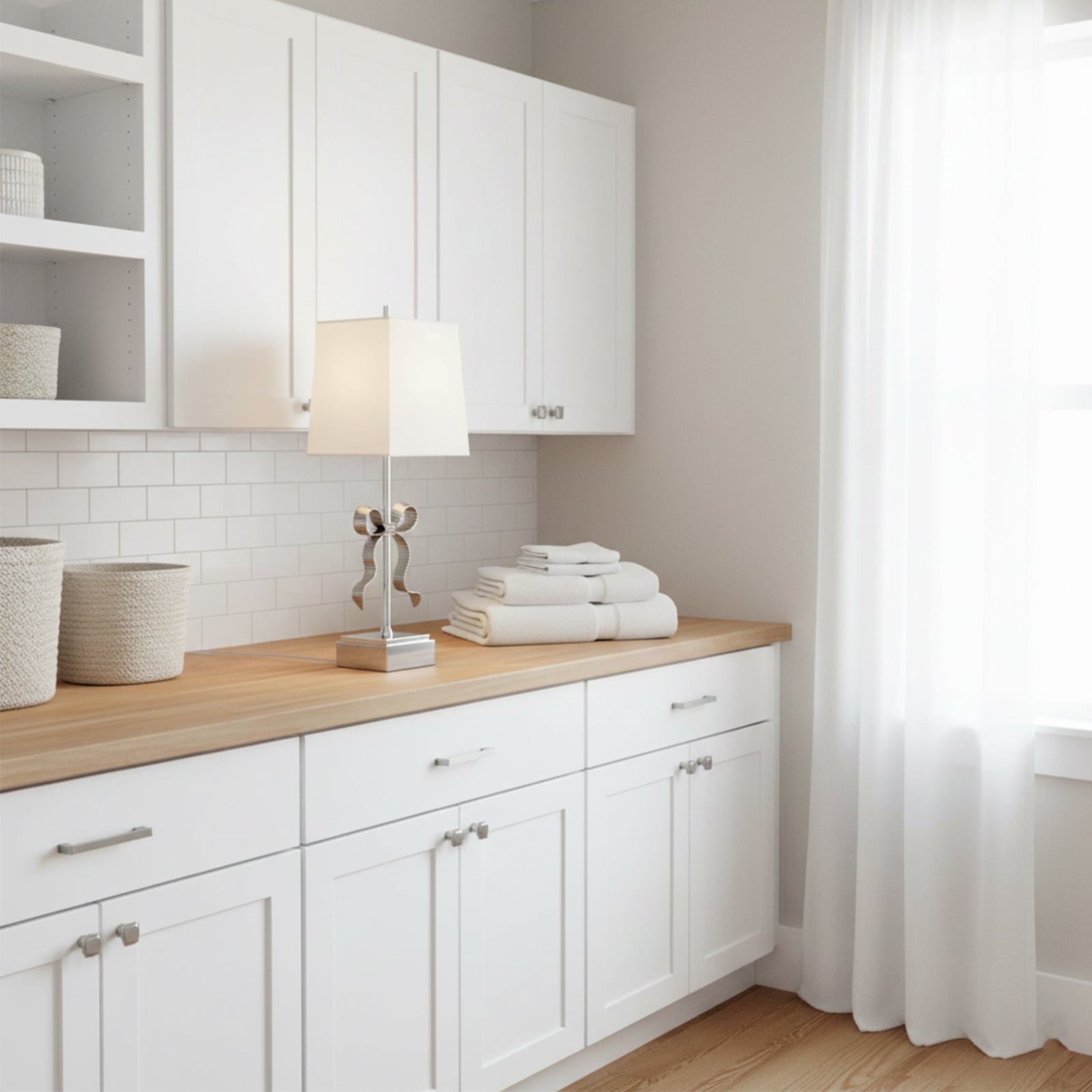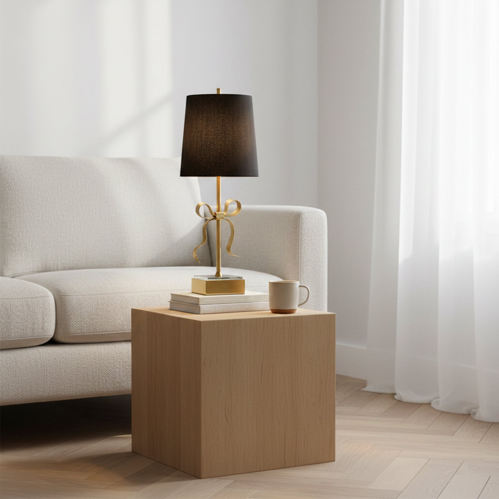 The Grosgrain Bow Table Lamp exudes graceful elegance with its decorative grosgrain bow and mirrored base. The linen shade adds a touch of glamour and the perfect feminine accent to any room. Illuminate your space with sophistication and charm.