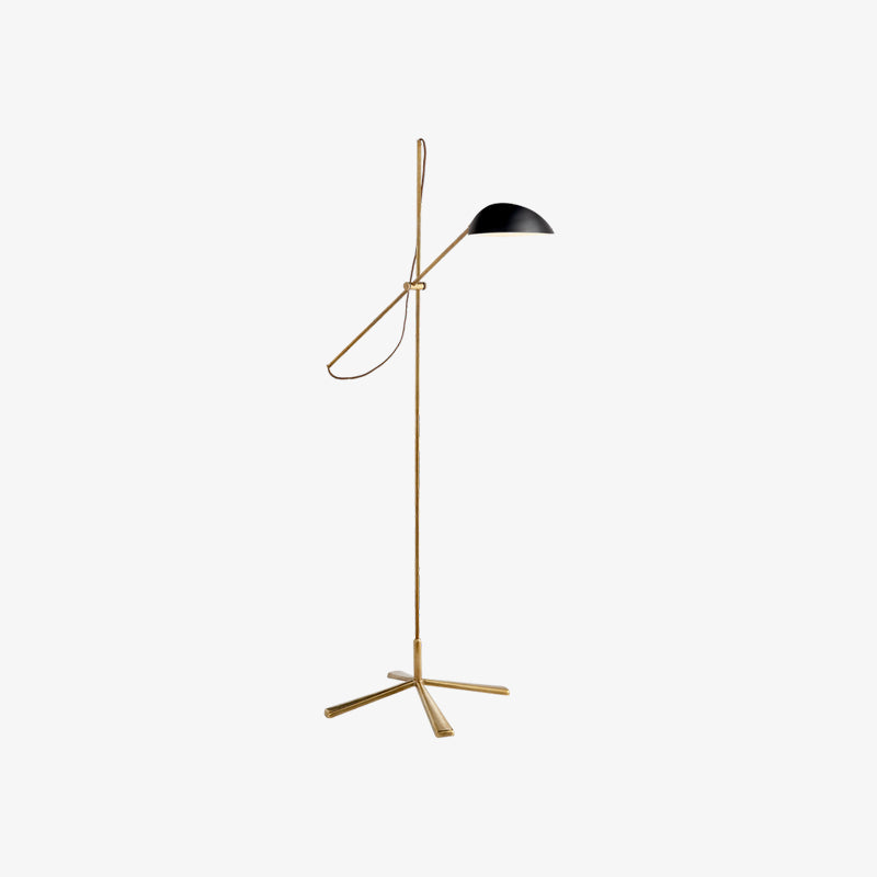 Elevate your home decor with the Graphic Brass Floor Lamp. The slim metal frame and curved shade exude modern elegance, providing warm mood lighting for your dining or living room. Choose from black or white for the perfect mid-century touch. Upgrade your space instantly!