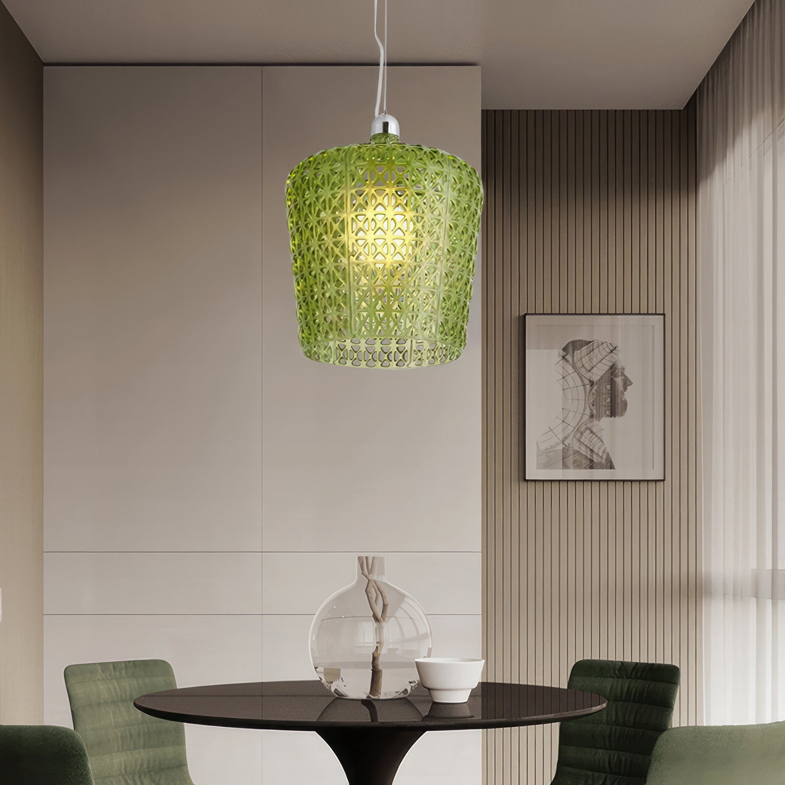 Light up your space with the modern, distinctive design of the Kabuki pendant lamp. Our innovative shaping process creates a mesmerizing, diffused light inspired by the beauty of nature. Let next-generation lighting inspire your senses and elevate your space.