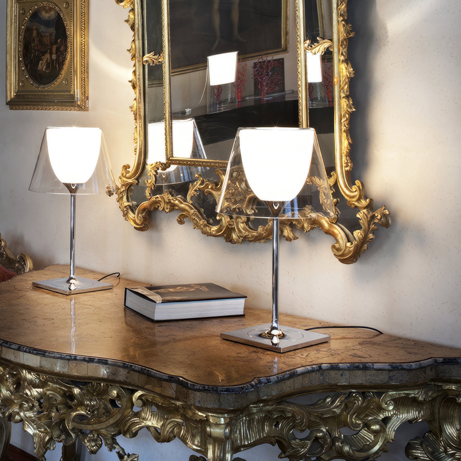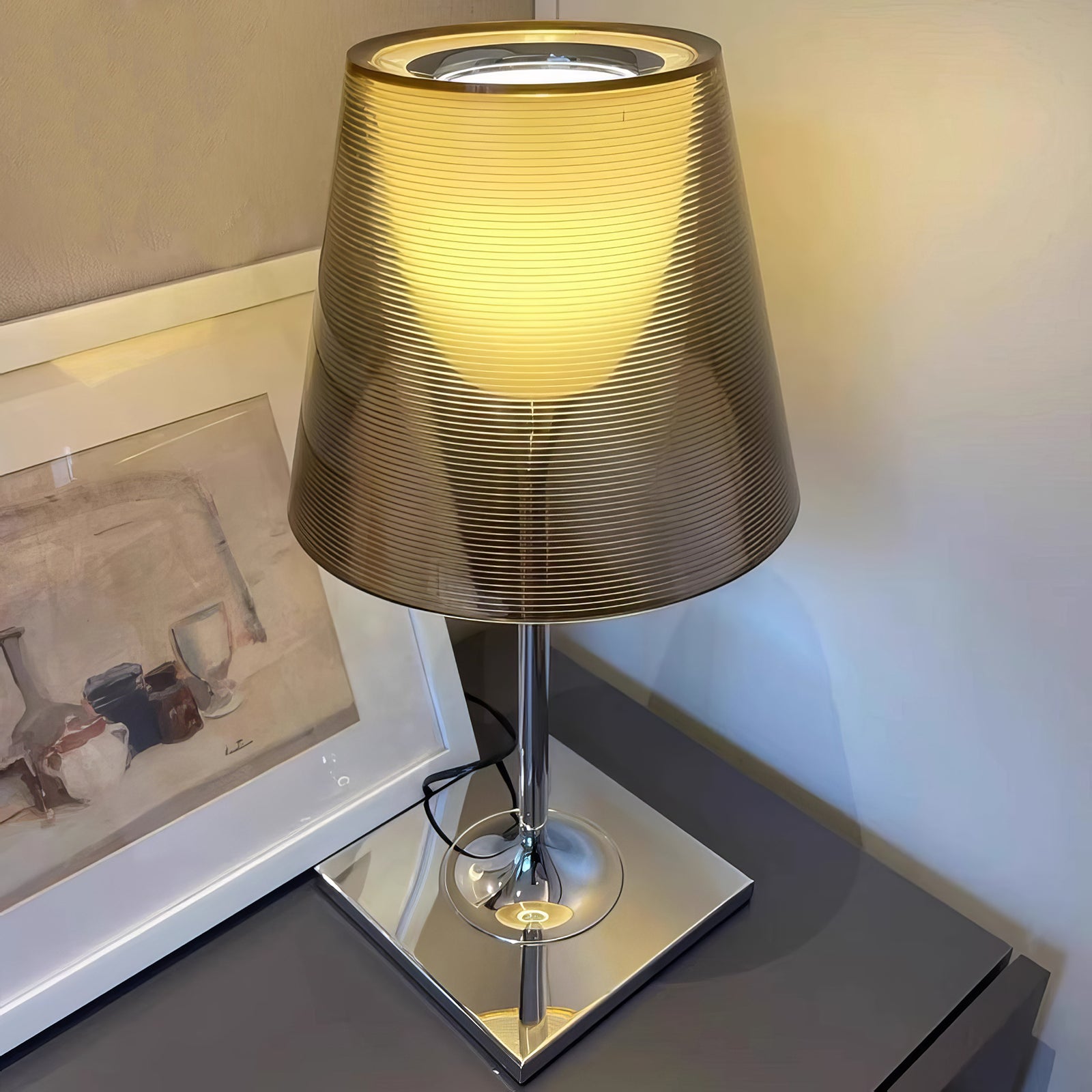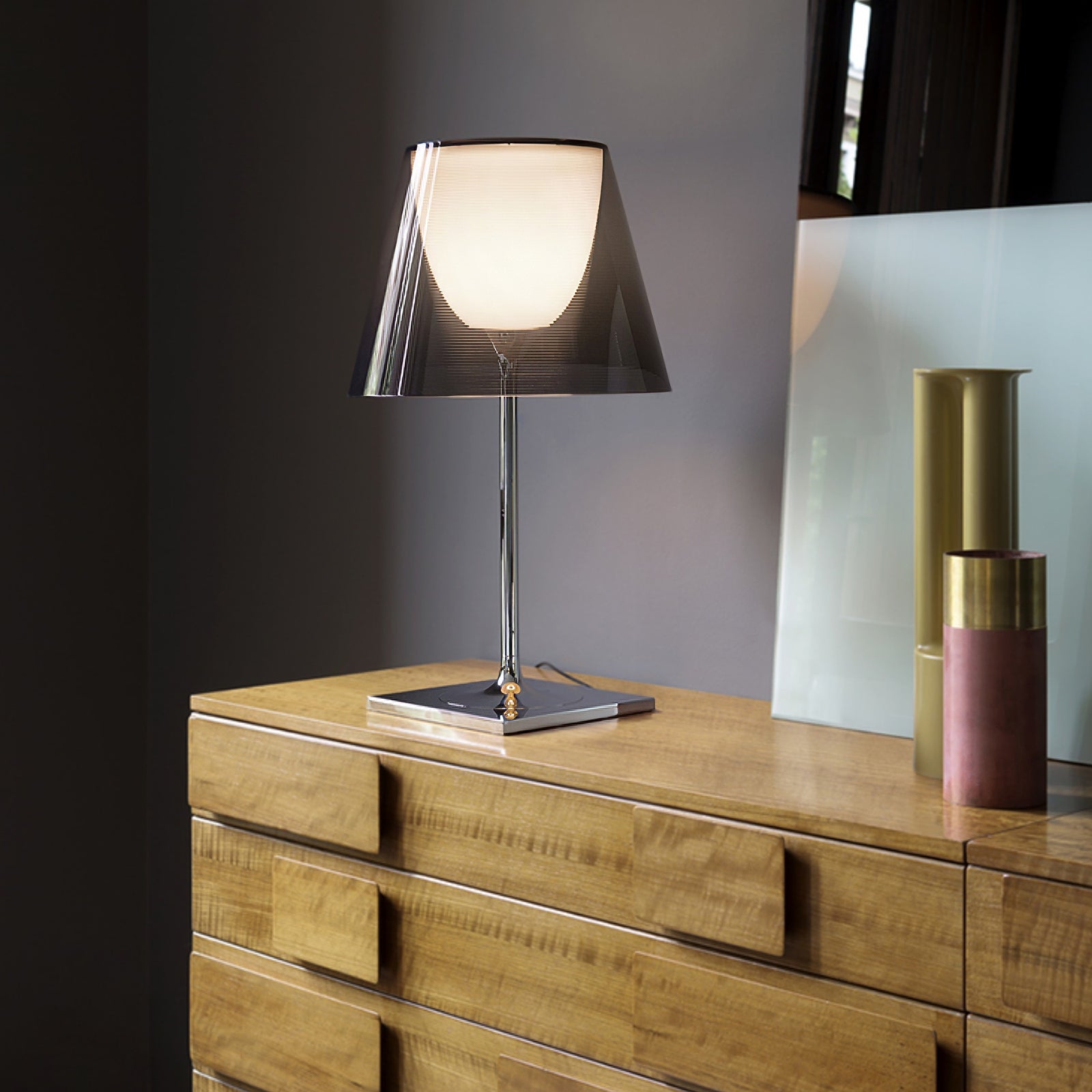 Illuminate your space with the KTribe Table Lamp, made of special polycarbonate for a durable and stylish design. Its hidden diffuser creates a soft and ambient glow. Choose from four shades to match your decor. Perfect for adding a touch of elegance and warmth to any room.