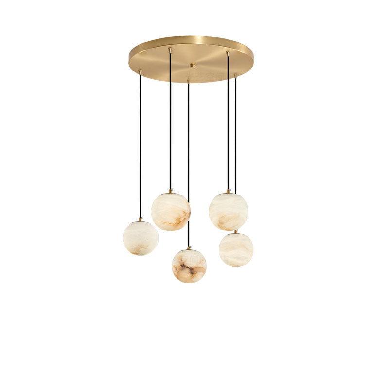 Elevate your home decor with the Luxury Multi-Globe Alabaster Light from liootrlamp. This stunning chandelier features multiple alabaster globes suspended at varying heights, creating a dynamic and elegant visual effect. Perfect for staircases and grand entryways, it adds a touch of sophistication and luxury to any space. The warm glow from the alabaster globes provides a welcoming ambiance, making it an ideal centerpiece for modern villas and upscale interiors.