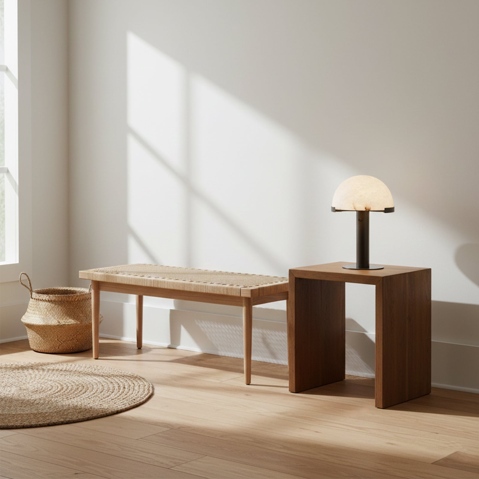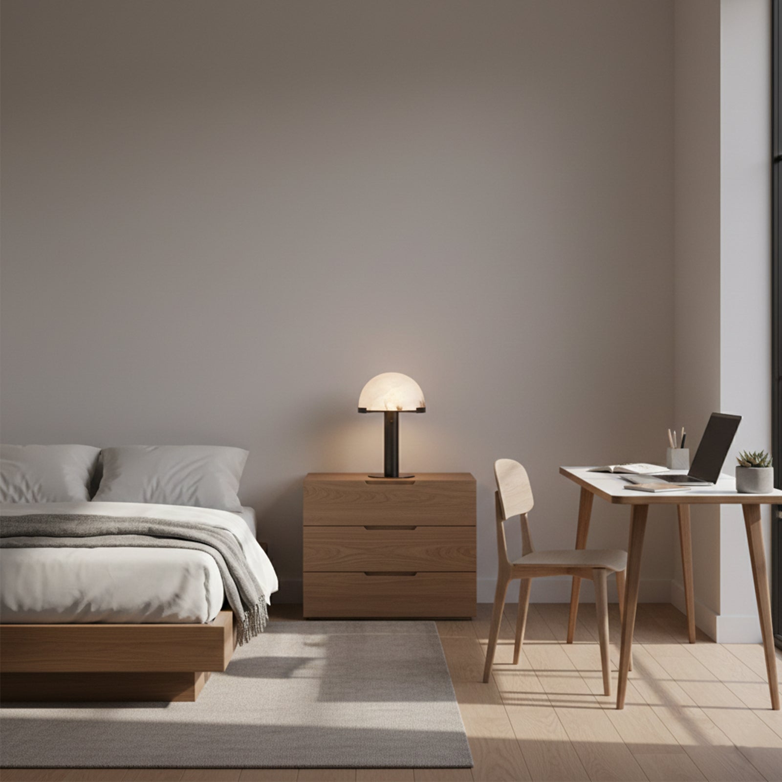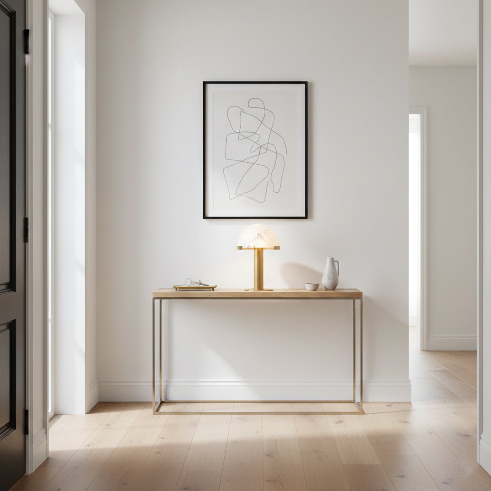 Experience modern luxury with the Modern Organic Stone and Brass Table Light. The unique combination of natural organic stone creates a striking contrast, adding an opulent element to any room. The sculpted shade emits a soft glow, while the streamlined shape softens sharp edges. Illuminate your space with style and sophistication.
