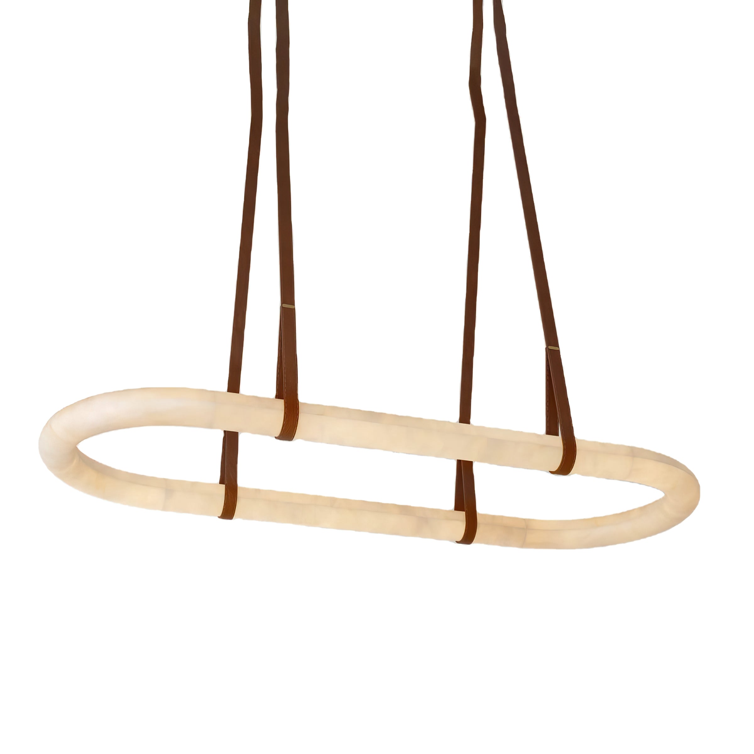 Transform your space with the Modern Loop Alabaster Pendant Light from liootrlamp. This distinctive pendant light features a unique loop design crafted from elegant alabaster, suspended by sleek leather straps. Its warm, inviting glow and contemporary style make it a perfect addition to any modern interior. Ideal for dining areas, living rooms, or kitchens, this light fixture adds a touch of sophistication and artistic flair to your home decor.