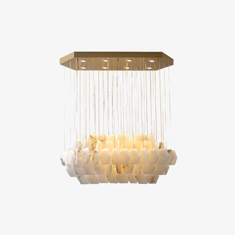 Add sparkle to your home with our Natural Alabaster Modern Chandelier. Crafted from premium metal and alabaster, the unique and stylish design adds a modern touch to any room. Experience warm, natural lighting while enhancing the beauty of your home. Perfectly blend beauty and functionality to create a home that's uniquely yours.