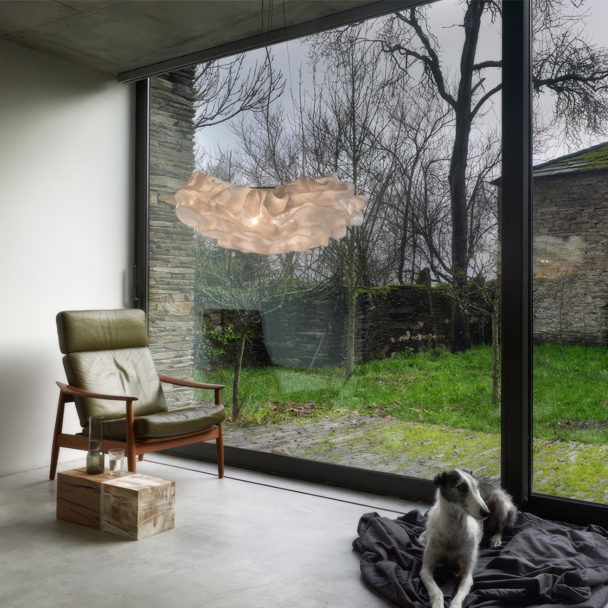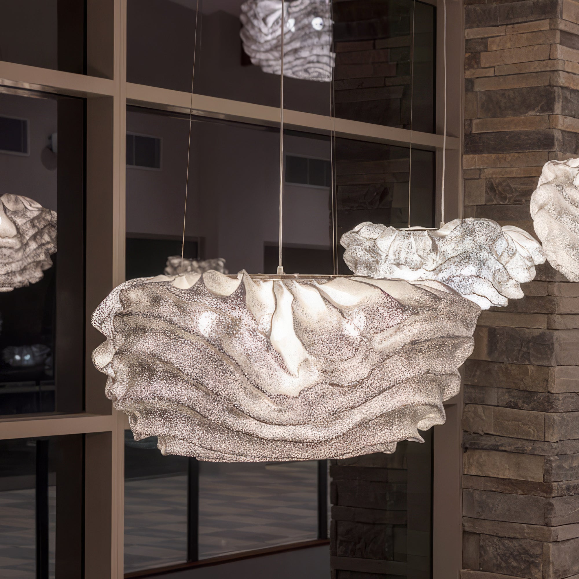 Transform your space with the Nevo Pendant Lamp! Handcrafted from painted stainless steel mesh, its unique curves and textures create a sense of movement and fluidity, while the intricate folds allow light to dance and bring life to any room. Experience the artistry and innovation of Arturo Alvarez in your own home.