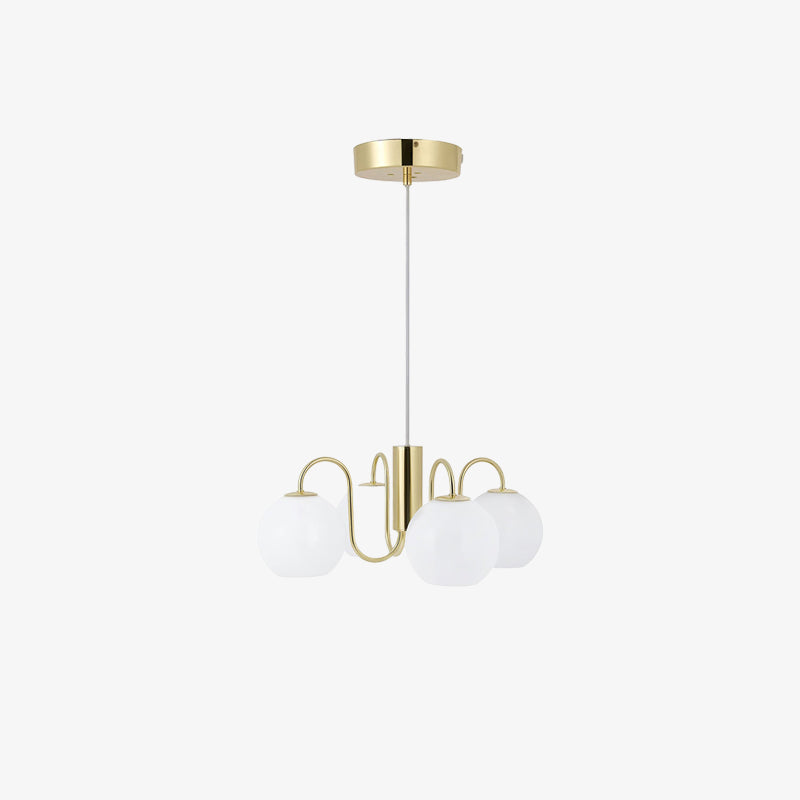 The Nordlux Franca Chandelier combines modern elegance with playful curves, making it a versatile centerpiece for any interior. Featuring a sleek brass-finished structure, this chandelier holds four opal glass globes that provide a soft, diffused light, creating a warm and inviting ambiance. The design’s minimalistic aesthetic is complemented by gracefully curved arms, adding a touch of sophistication to its contemporary form.
