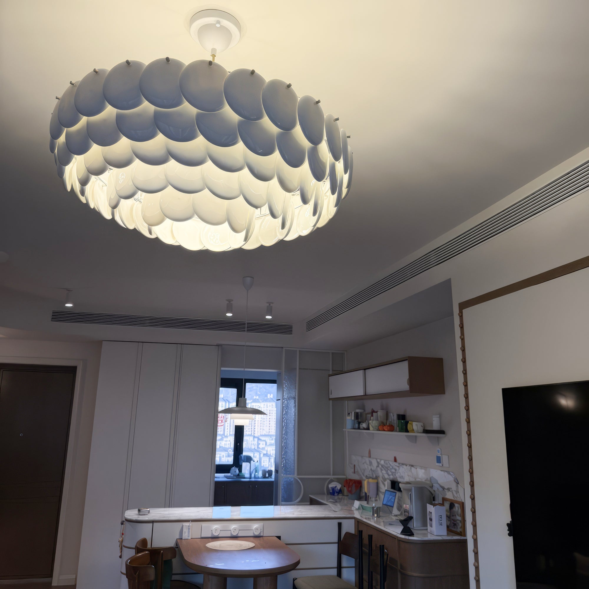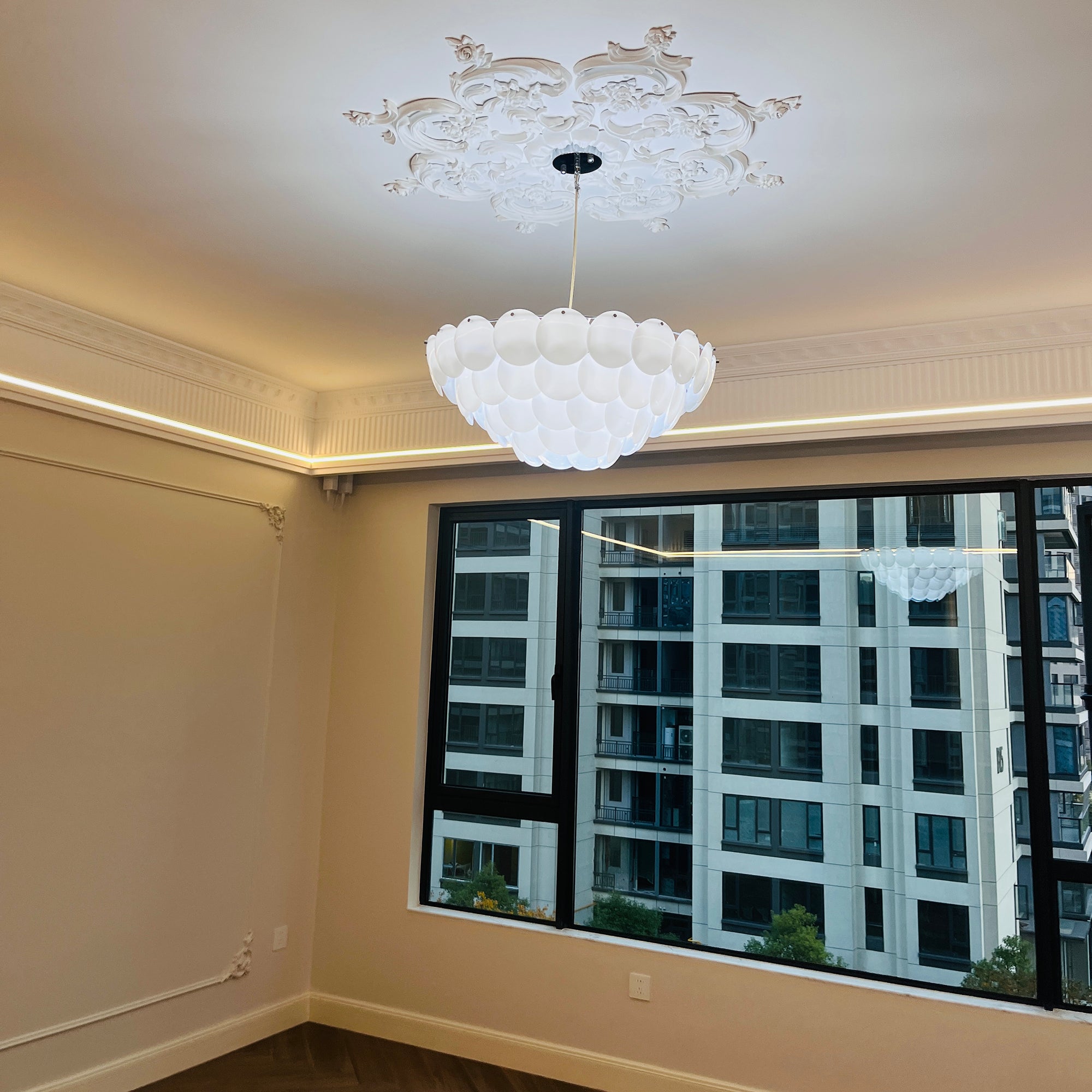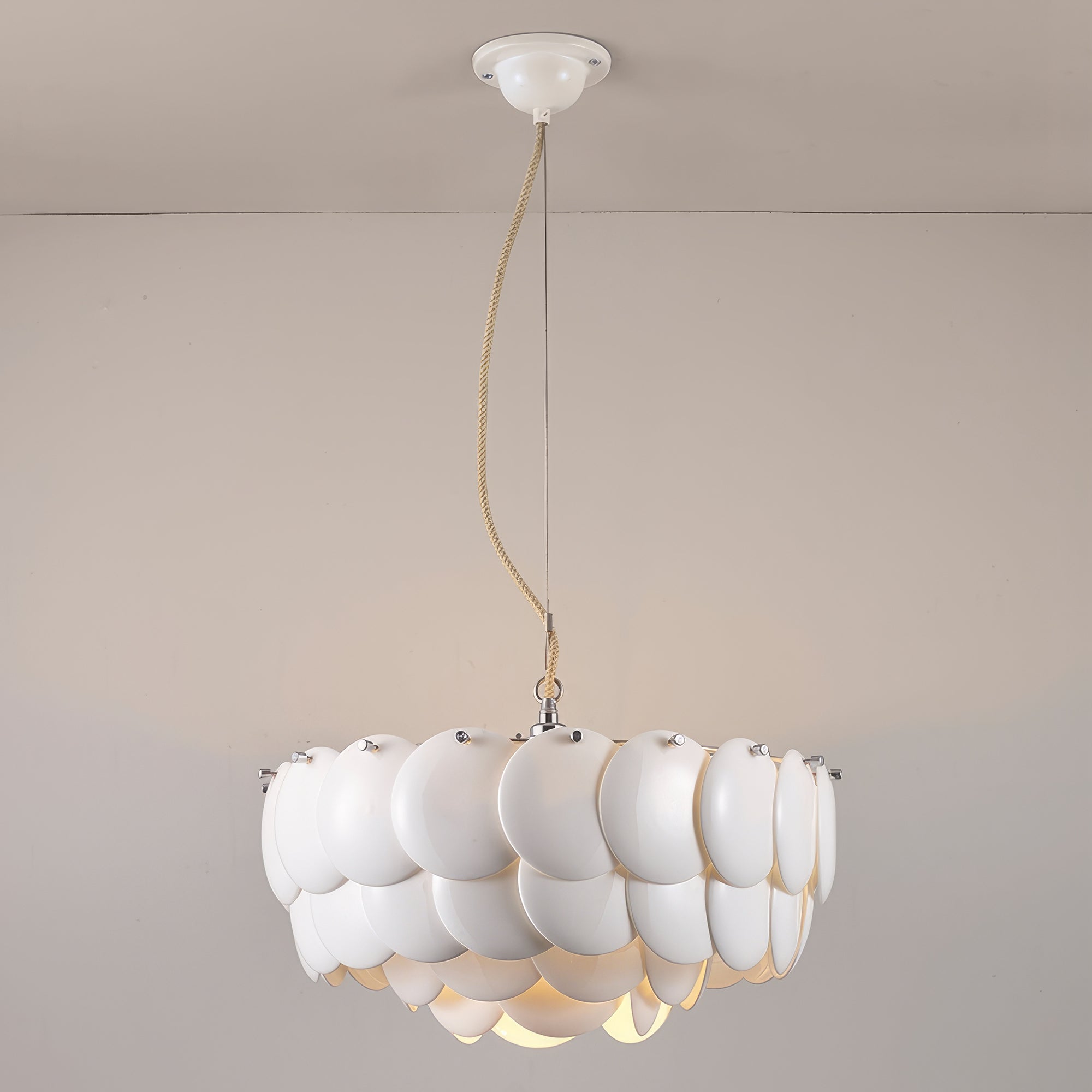Experience soft, atmospheric lighting with our Pembridge Chandelier. Multiple layers of high-quality ceramic diffuse light to create a beautiful play of light and shadow. Open at the top and bottom, this chandelier adds a luxurious touch to any space. Elevate your home with the Pembridge Chandelier.
