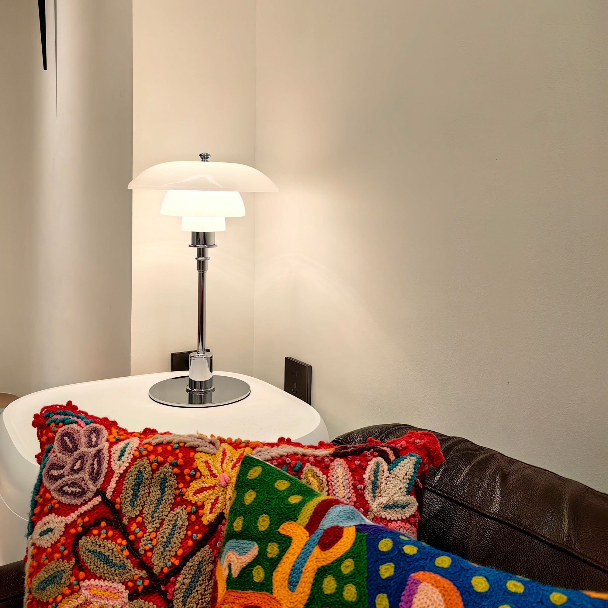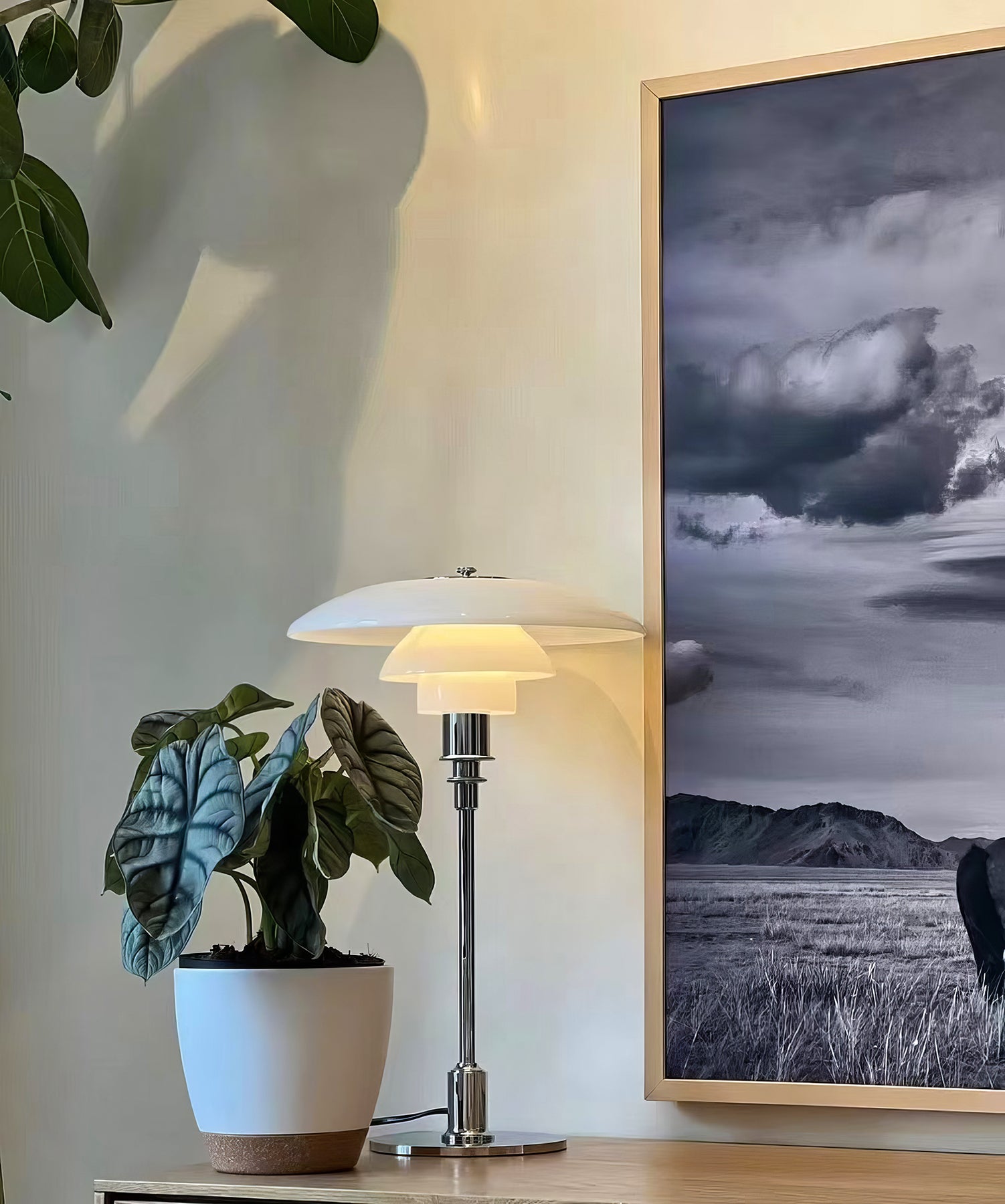 Transform your space with the iconic Poulsen PH 2/1 Table Lamp. Featuring an anti-glare design and logarithmic spiral method, this lamp provides gentle and harmonious lighting. The hand-blown triple-layer opal glass shade directs light downwards for a soft and comfortable distribution. This award-winning lamp, first debuted at the 1925 Paris Expo, will add elegance and style to any room.