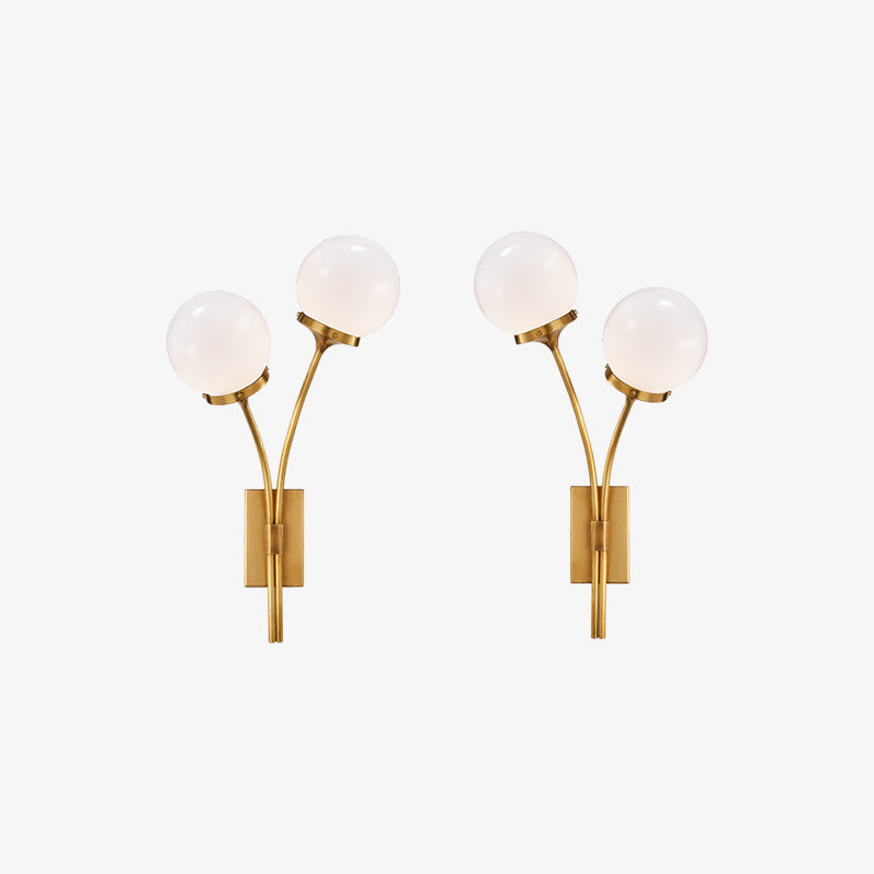 Brighten up any room in your home with our elegant Prescott Left and Right Wall Sconces. Crafted from premium brass and glass, this set of wall sconces emits a warm, inviting glow. The frosted glass shades add a touch of sophistication, while the matching left and right designs create a balanced look. Transform your space with this stylish set of wall sconces!