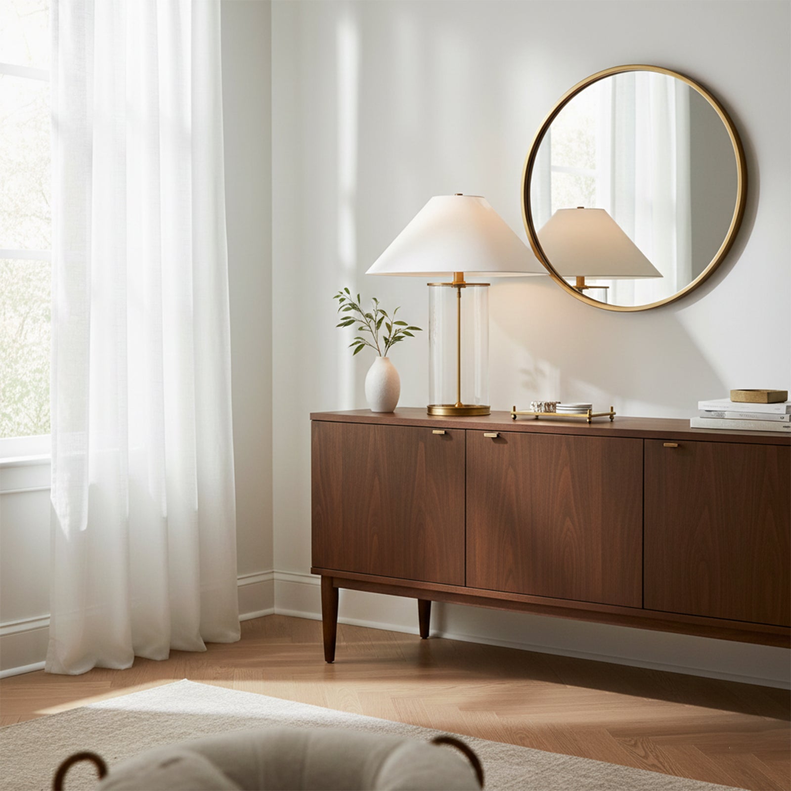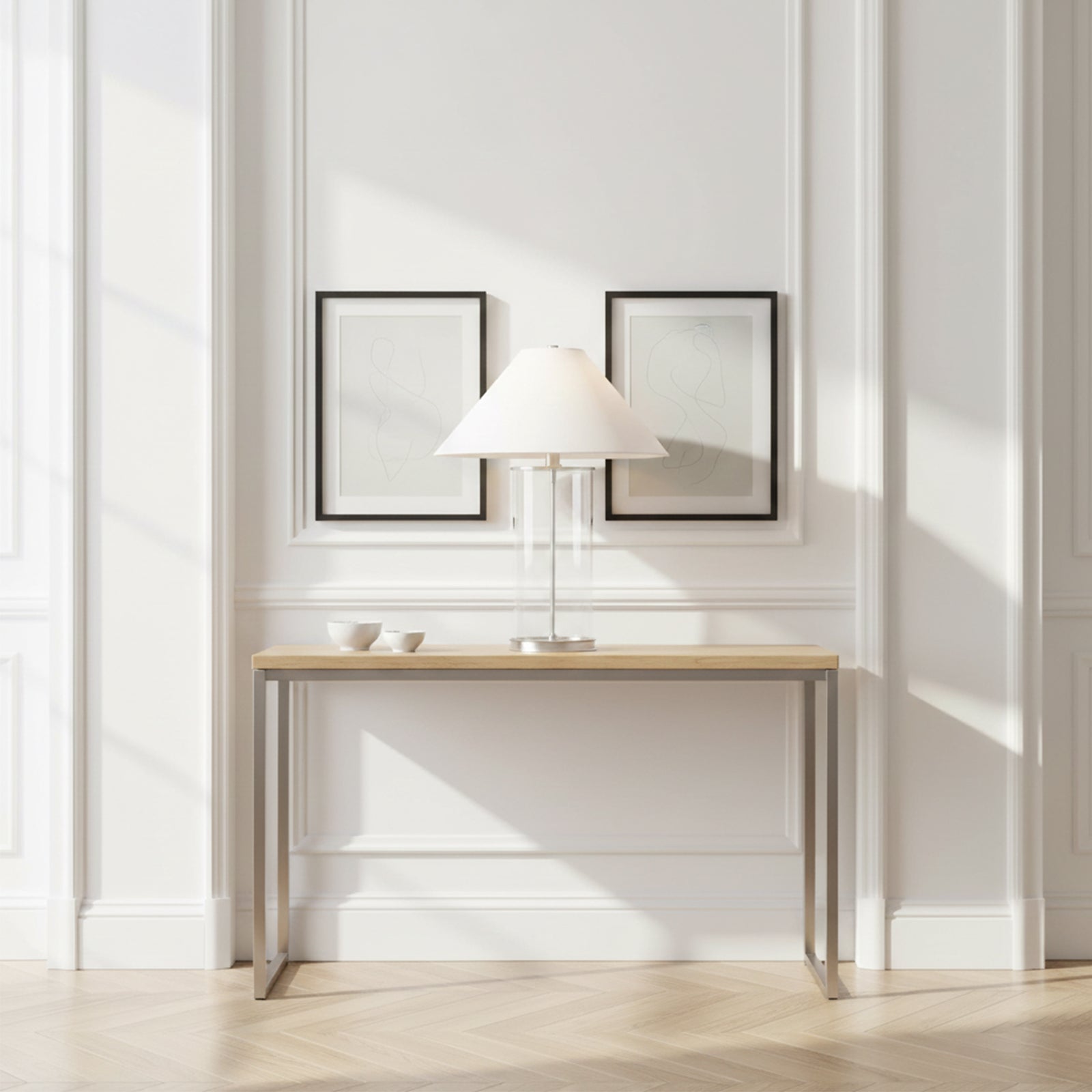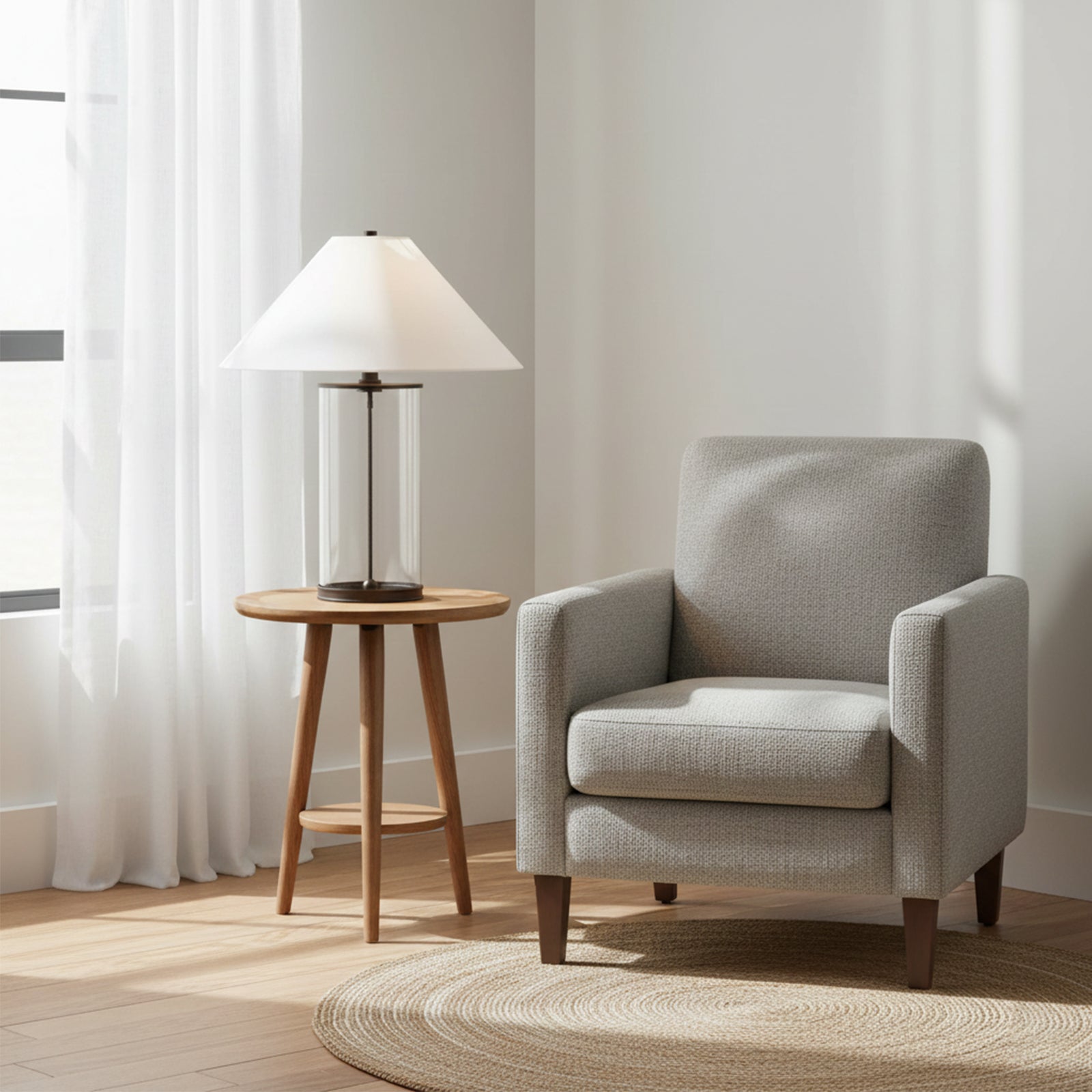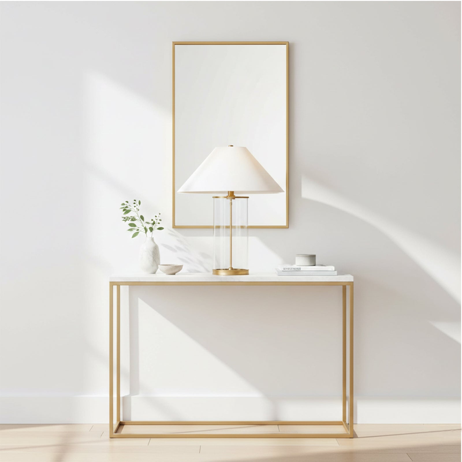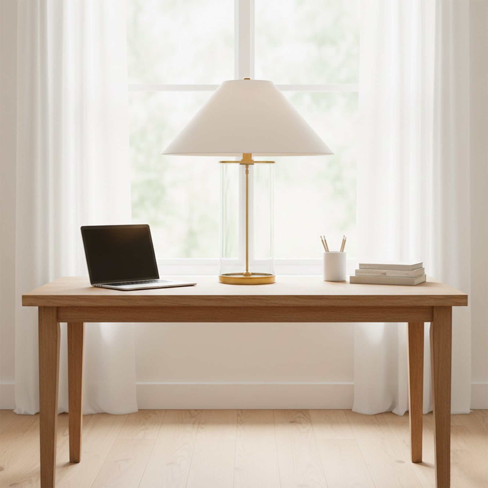 Illuminate your space with the sleek and sophisticated Lauren Modern Brass Table Lamp. Its cylindrical lamp base and conical paper shade project bright, downward light. Crafted with solid brass accents, this modern piece adds an elegant touch to any room. Enhance your home with this refined and stylish lighting option.