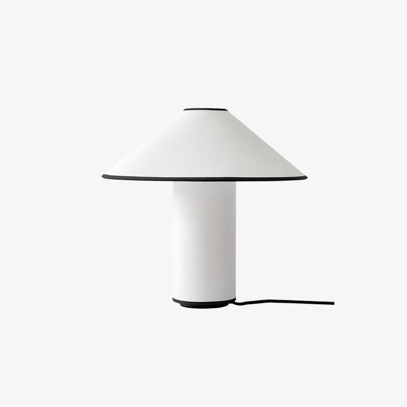 The Red Trim Cone Shade Table Lamp combines elegance with a modern twist, drawing inspiration from Art Deco design. Its clean, white fabric shade is accentuated by a bold red trim along the edges, adding a subtle yet sophisticated contrast. The conical shade rests atop a simple cylindrical base, creating a sleek silhouette that enhances its timeless aesthetic. This table lamp’s blend of functionality and style allows it to harmonize with a variety of interiors, serving as both a practical light source and a statement piece.