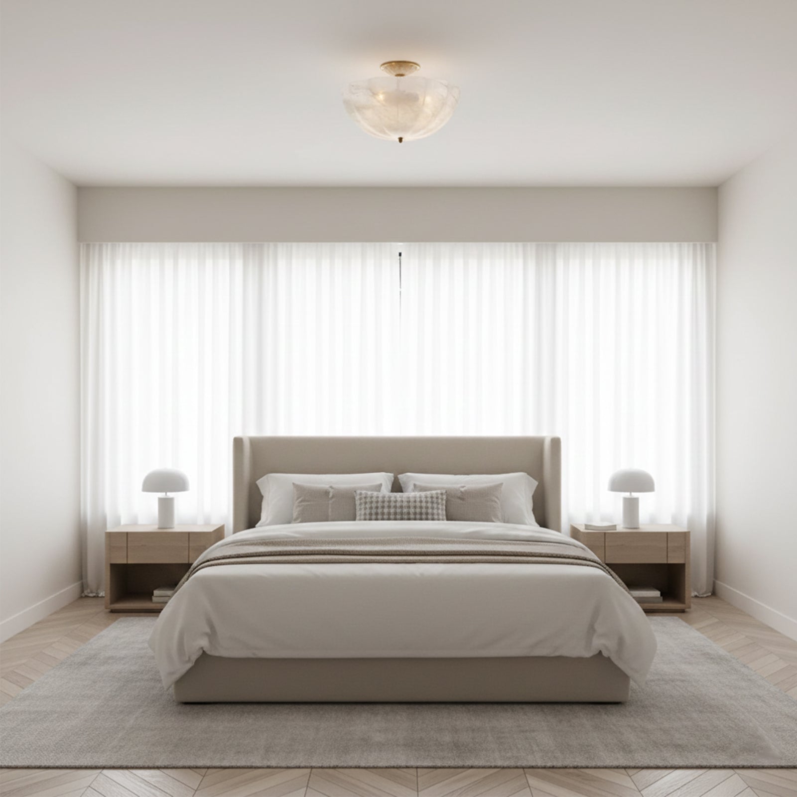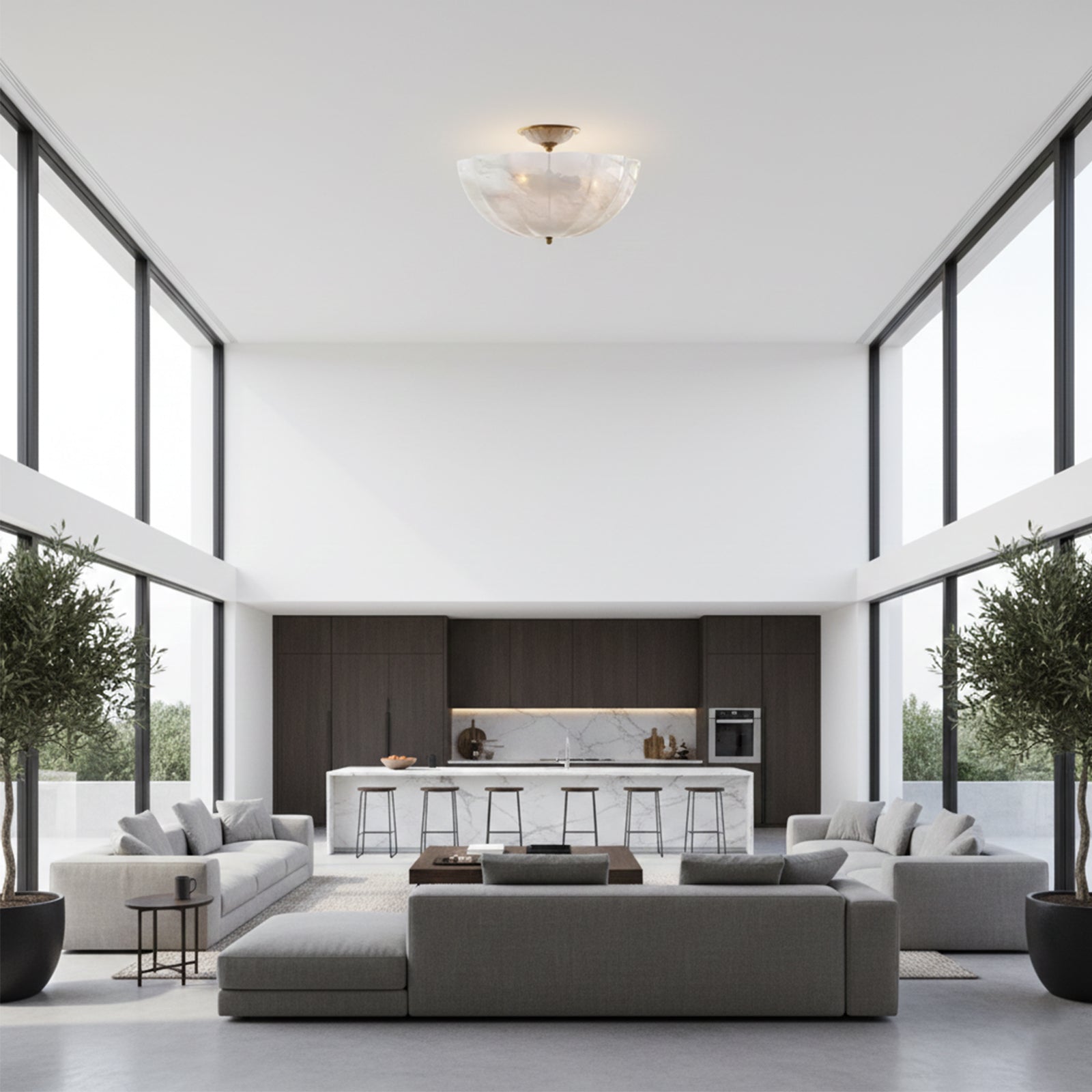 Add a touch of elegance to any space with the Mid-Century Glass and Metal Ceiling Light. Featuring a sophisticated antique bronze finish, this fixture blends classic materials with a modern silhouette. The premium white glass shade emits a soft, understated glow that creates a calming ambiance. It is the perfect addition to any room, adding a sense of restraint and refinement. Elevate your space with the balanced beauty of this exquisite ceiling light.
