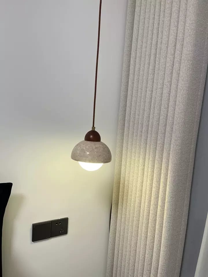 The Wabi-Sabi Textured Stone Pendant Light embodies natural beauty and simplicity, showcasing an artisanal, rustic charm. Its half-dome stone shade features a unique textured finish, inspired by the Japanese Wabi-Sabi philosophy that embraces imperfections. The warm, diffused light casts a cozy glow, making it ideal for creating an inviting atmosphere in living rooms, bedrooms, or dining areas. This pendant light’s organic design and understated elegance make it a perfect accent for interiors that value authenticity and natural materials..