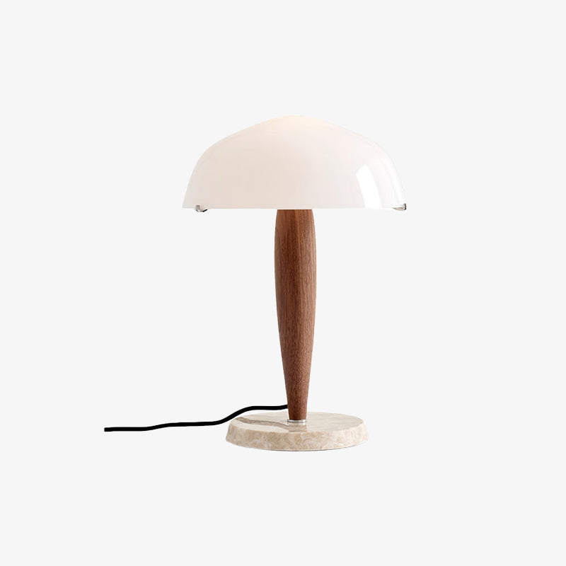 The Scandi Walnut Dome Table Lamp embodies the elegance of Scandinavian design with a natural and minimalist aesthetic. This lamp features a smooth, dome-shaped shade in a soft white hue, which provides a warm and diffused glow perfect for creating a cozy atmosphere. The shade is balanced by a refined walnut wood stem, showcasing rich, natural grain that adds warmth and character to the design. Resting on a solid marble base, this lamp exudes stability and sophistication, combining earthy materials for a harmonious blend of textures.