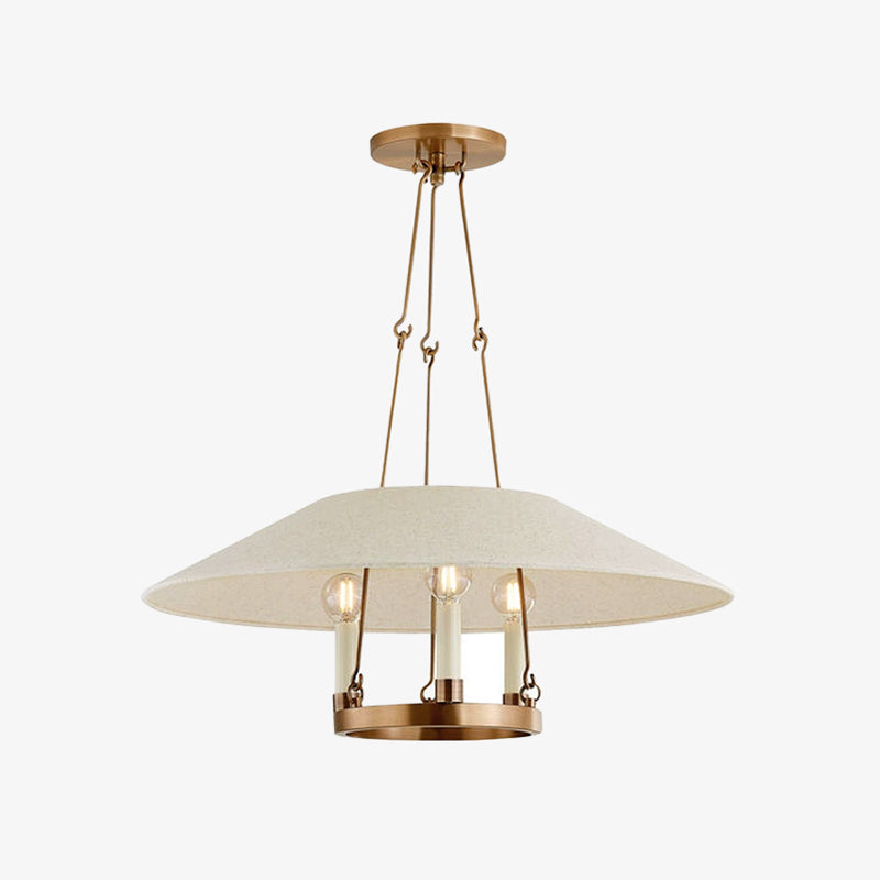 Introducing Troy Archive Chandelier - a reimagined take on traditional circular lighting. Three candles encircle a metal frame, elevated by delicate hooks. Unexpected natural linen hues enhance natural and soft lighting. Bronze finish adds a refined touch, casting warm light on ceilings. Elevate any space with the Archive Chandelier.