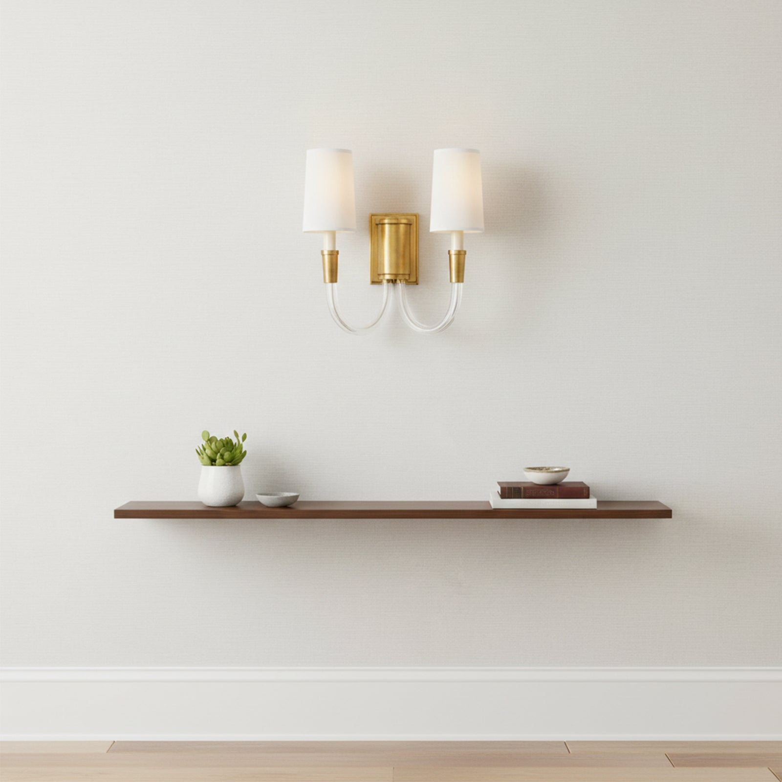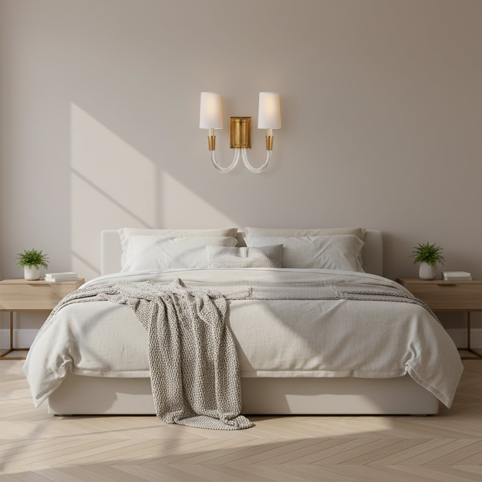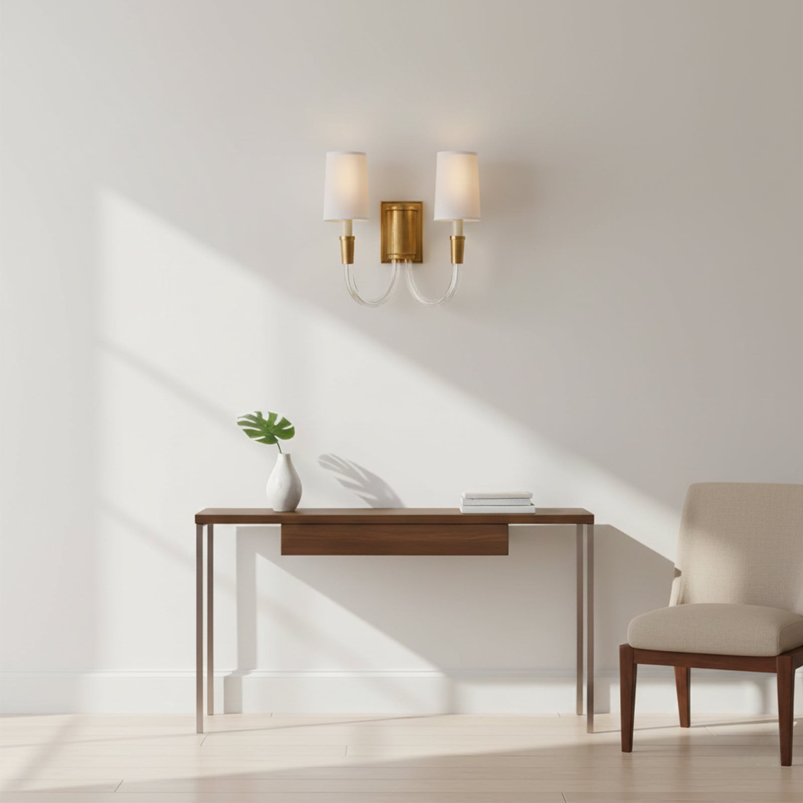 Add a touch of luxury and warmth to your walls with the Double Curved Arm Fabric Wall Light. The curved double-arm design and metallic finish create a subtle shimmer, while the fabric shade's warm glow adds a cozy ambiance to any room. Elevate your space with this beautiful yet simple lamp.
