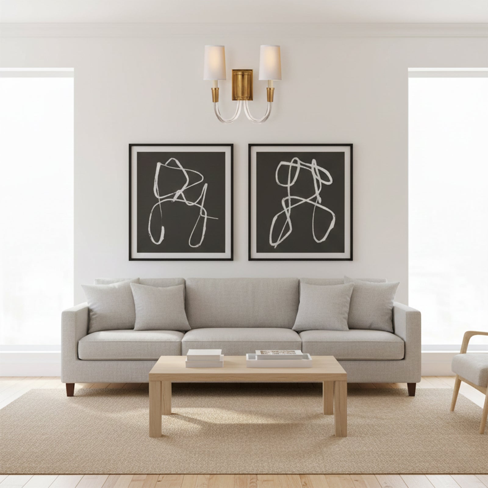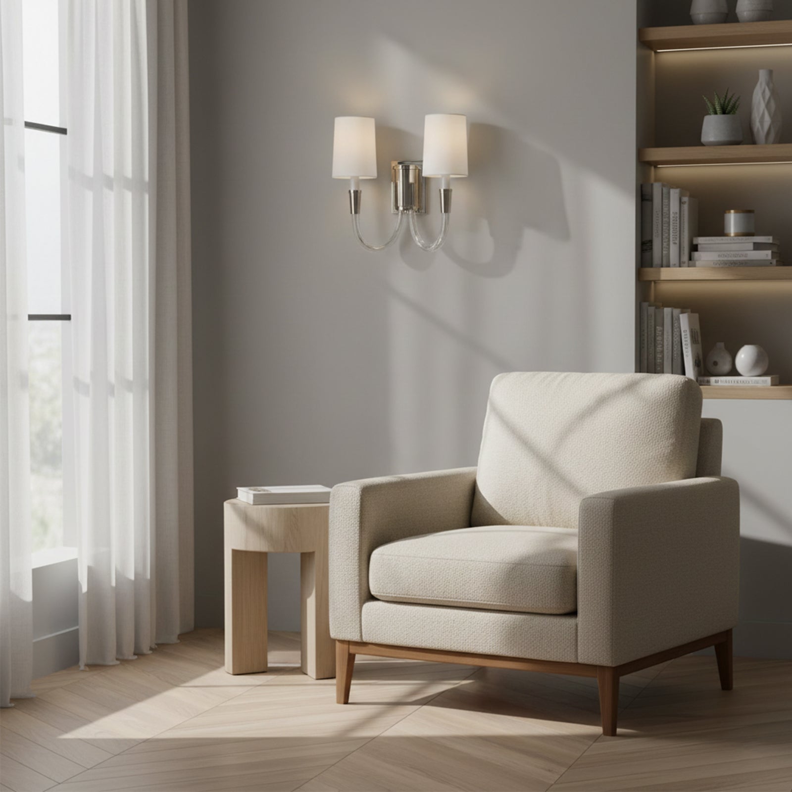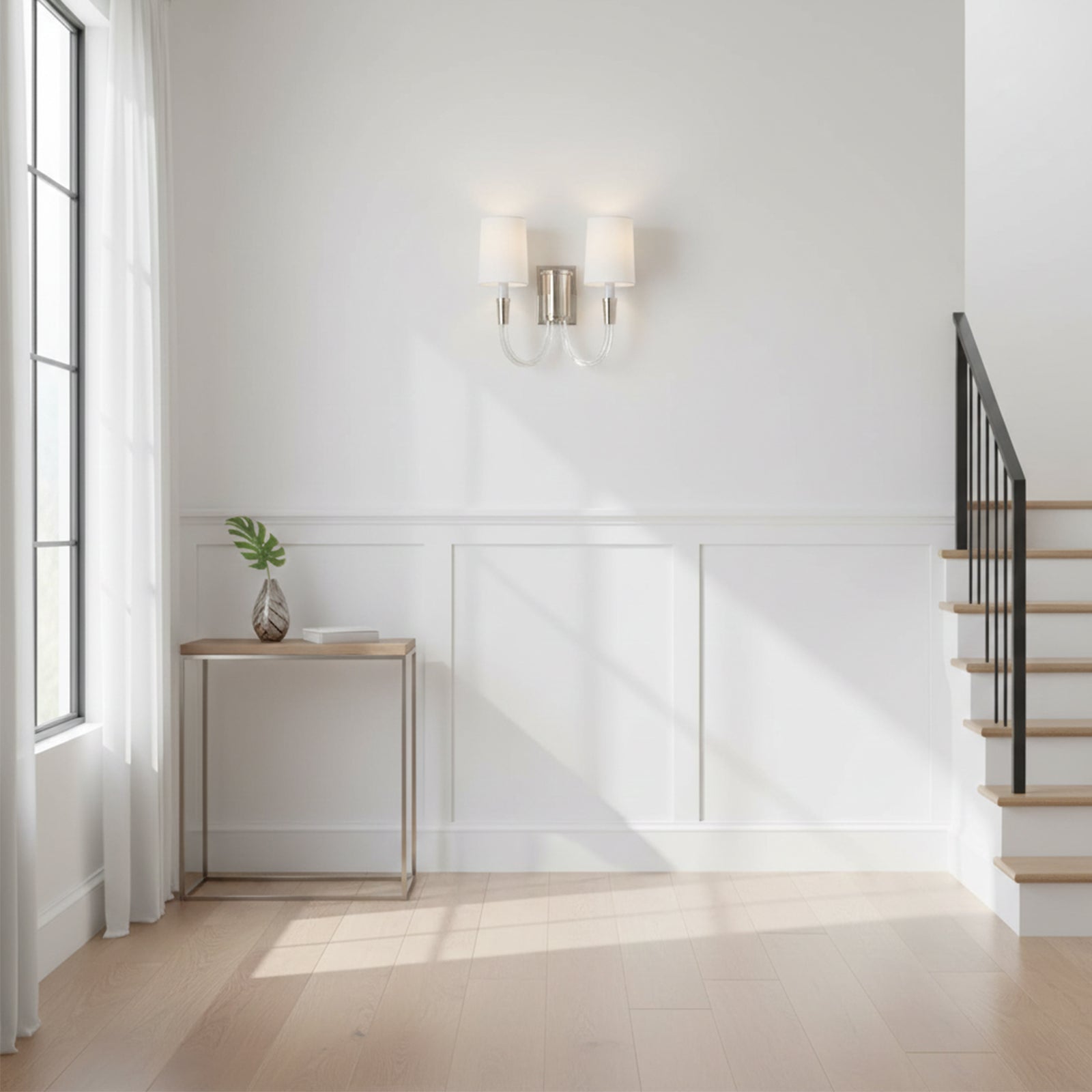Add a touch of luxury and warmth to your walls with the Double Curved Arm Fabric Wall Light. The curved double-arm design and metallic finish create a subtle shimmer, while the fabric shade's warm glow adds a cozy ambiance to any room. Elevate your space with this beautiful yet simple lamp.