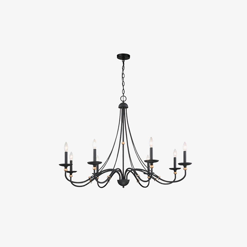 Enhance your space with the elegant design of this eight-light chandelier from the Westchester County collection. The smooth, curved arms are coated in a rich sand black finish, complemented by gleaming gold accents that add a luxurious touch. The candle-style lights, complete with matching cups and covers, create a refined, yet minimalist aesthetic. This chandelier is the perfect blend of traditional charm and modern sophistication, making it a stunning centerpiece for any room.